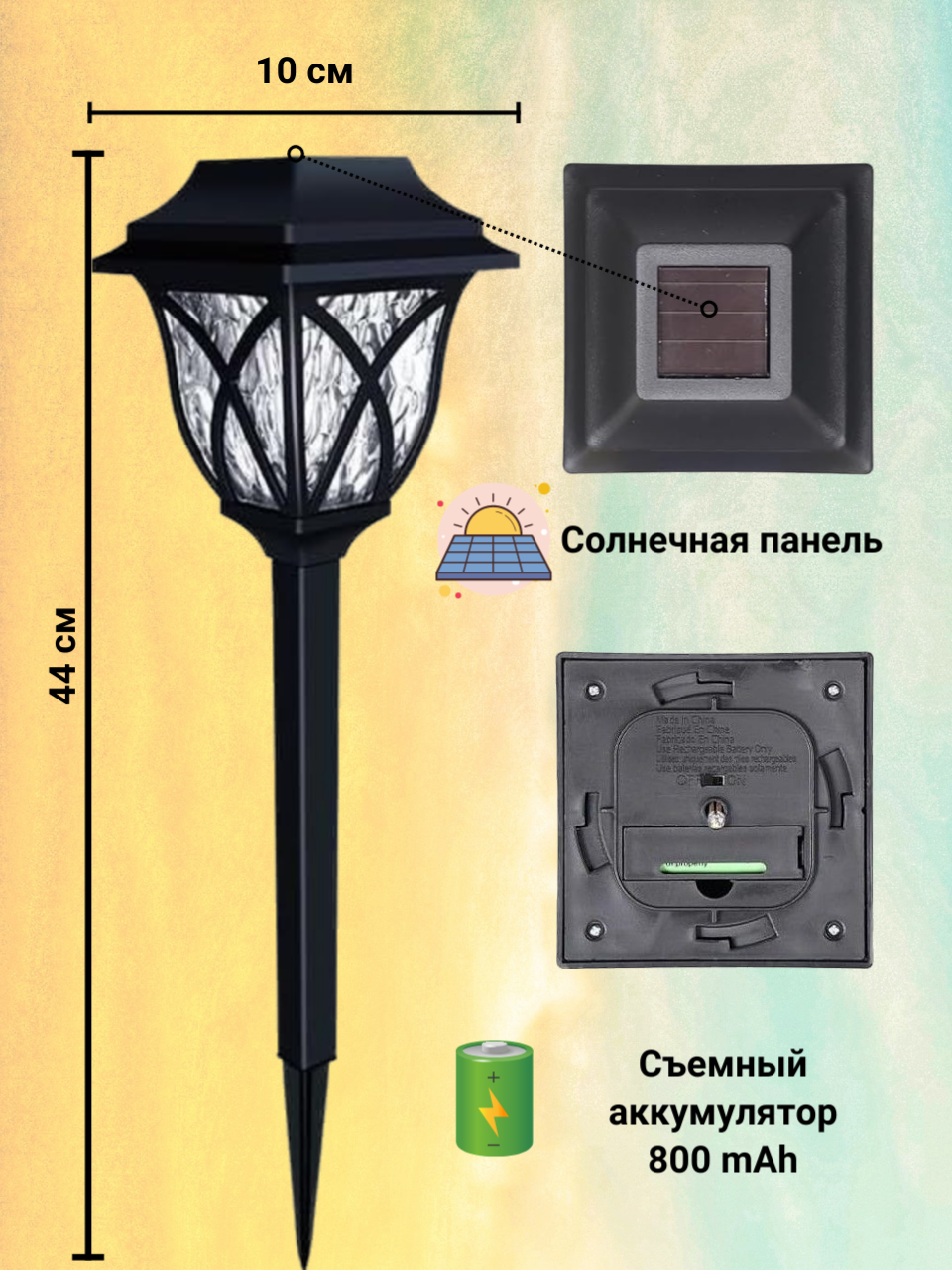 | Особенности | на солнечной батарее / прозрачный плафон |