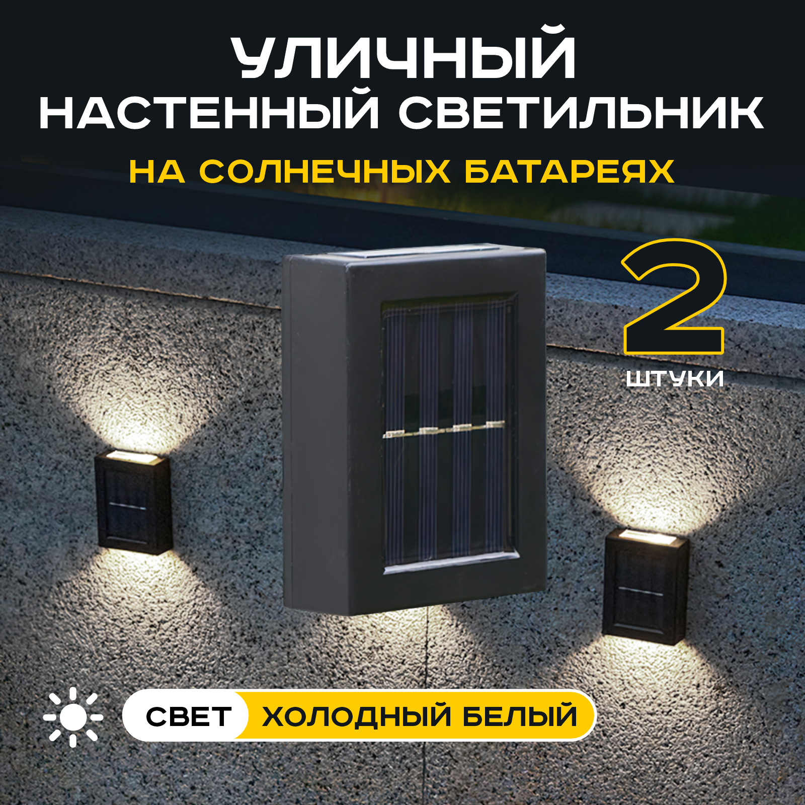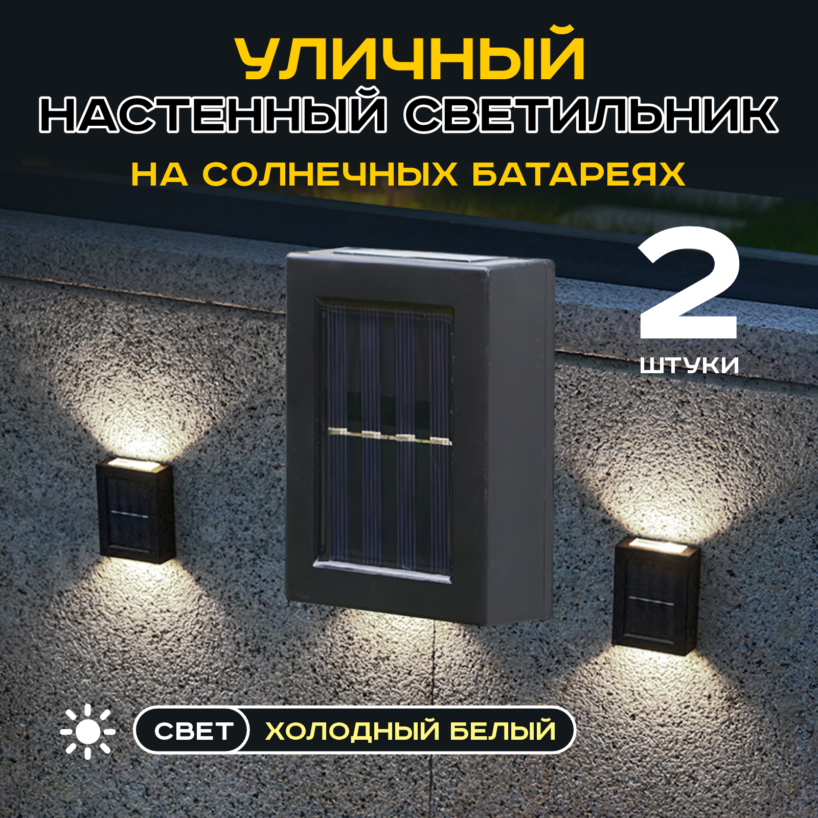 Уличный настенный водонепроницаемы светильник на солнечных батареях для сада и террасы (Холодный белый) х 2 шт информация: