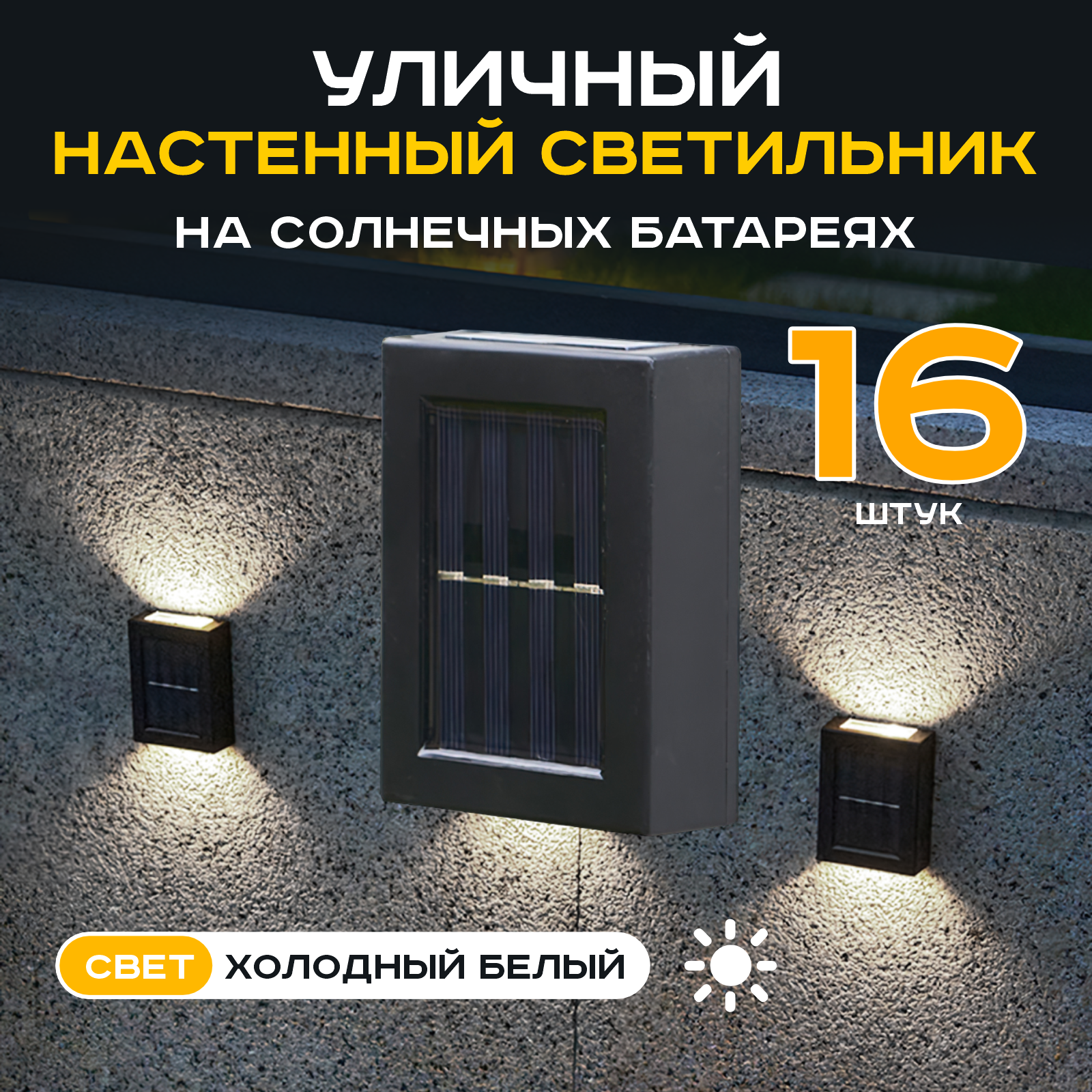 10 цен на Уличный настенный водонепроницаемы светильник на солнечных батареях для сада и террасы (Холодный белый) х 16 шт