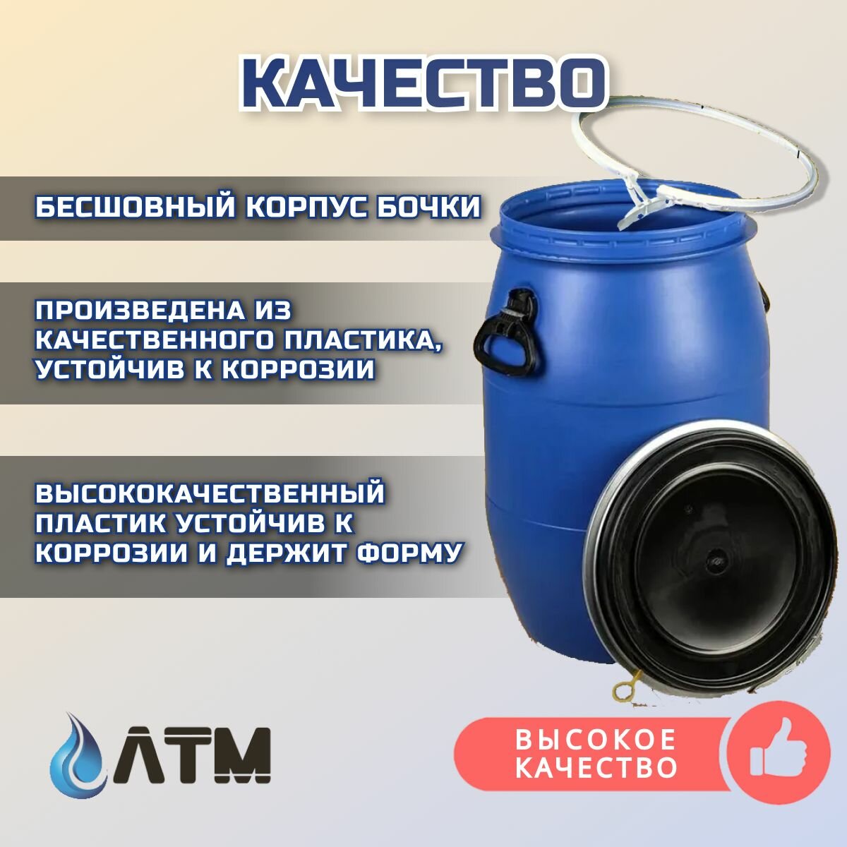 | Комплектация | Бочка - 48л; Крышка; Металлический хомут; Ручки навесные усиленные; Стрелка; Шплинт для пломбирования |