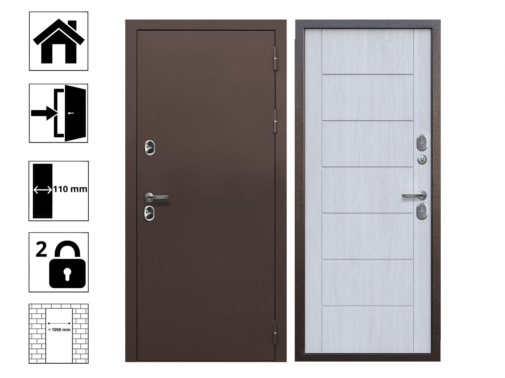 Дверь стальная мегатрон Термо-6 Медь-Астана Эш Уайт 860 Правая (терморазрыв)