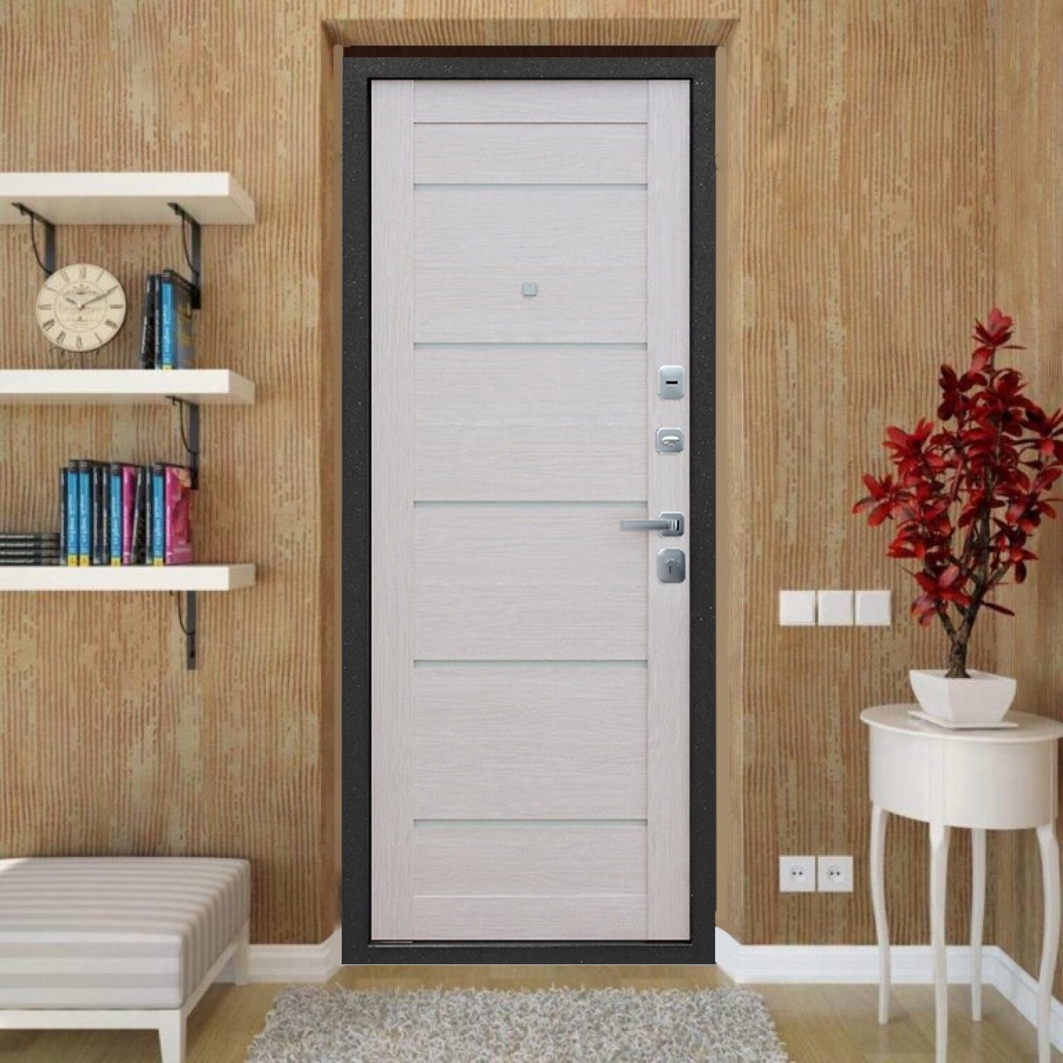 Дверь входная мегатрон WOOD 1 Ясень Дип Графит - Белый снег 860 Правая