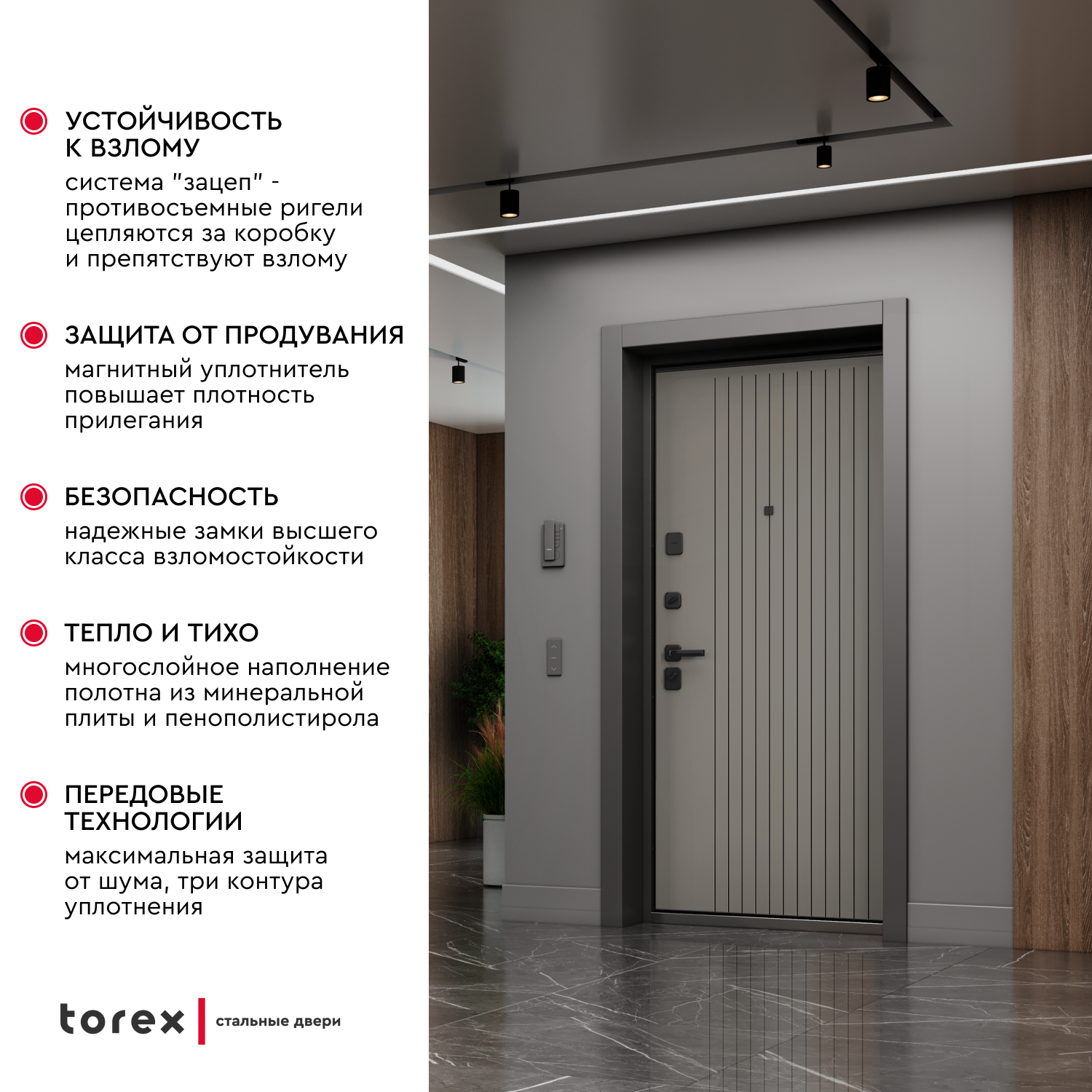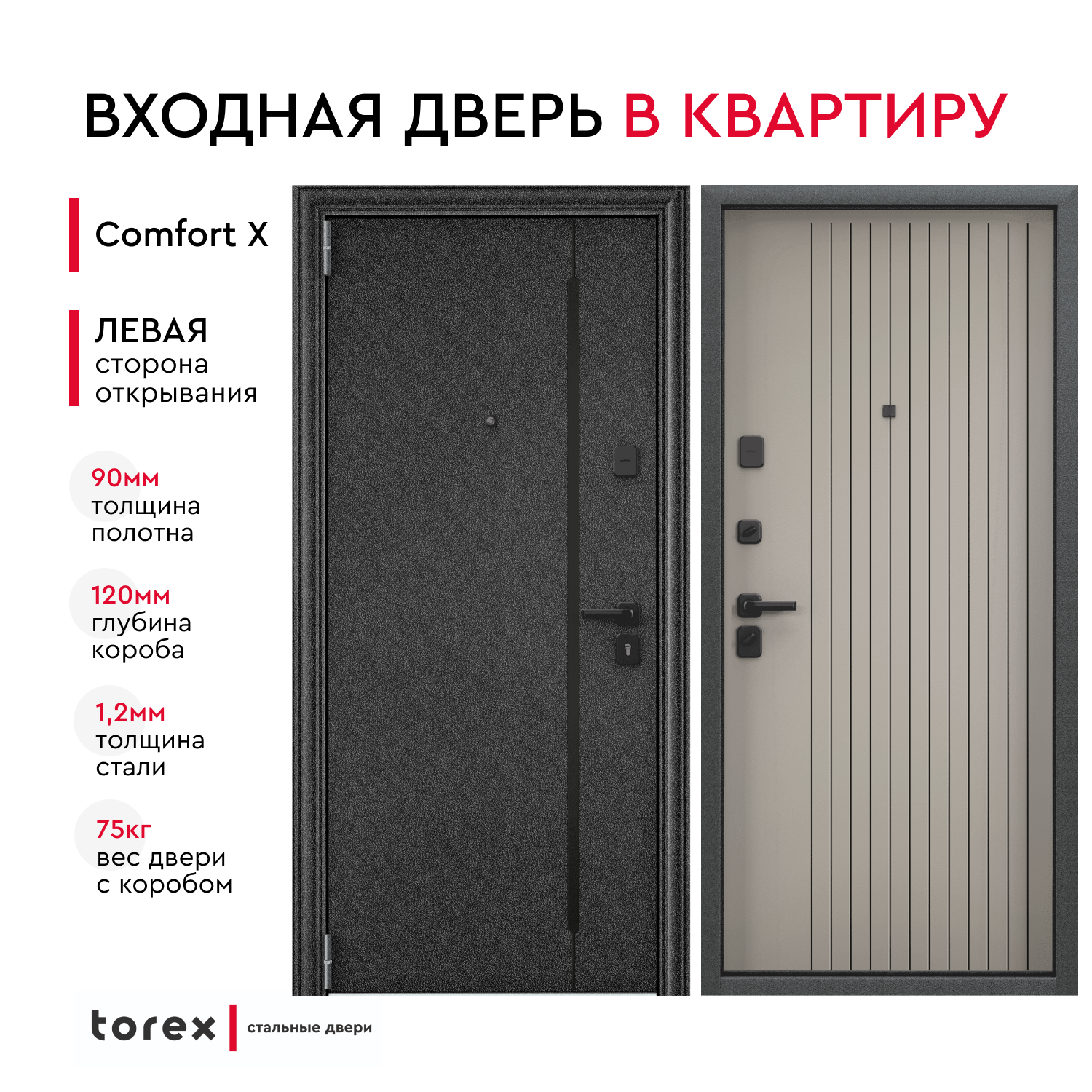 10 цен на Дверь входная металлическая в квартиру Torex Comfort X 880х2050 левая, усиленная защита и шумоизоляция, антикоррозия, замки 4ый класс