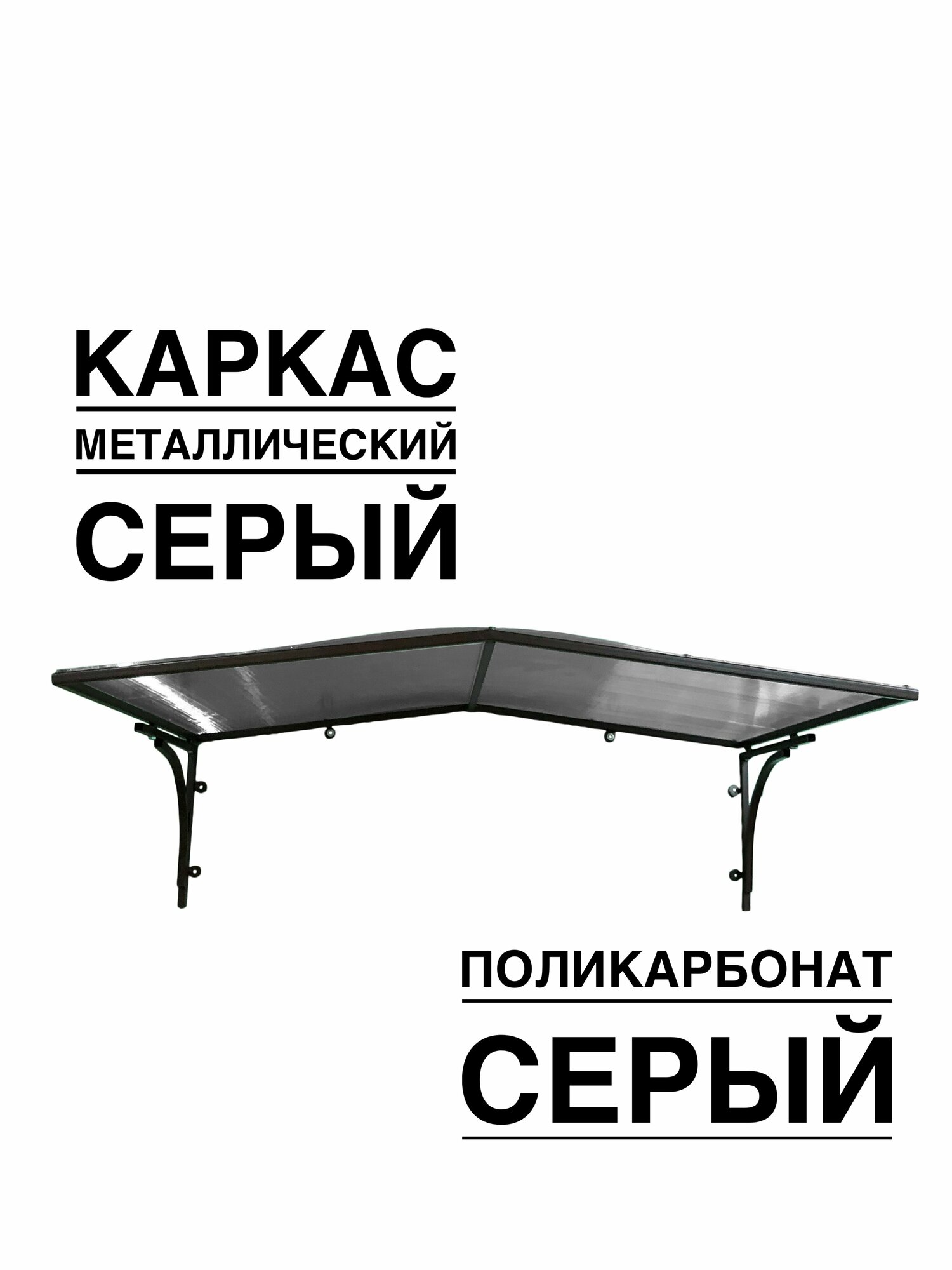 Отзывы на Козырек металлический над входной дверью, над крыльцом YS111SS серый каркас с серым поликарбонатом ArtCore