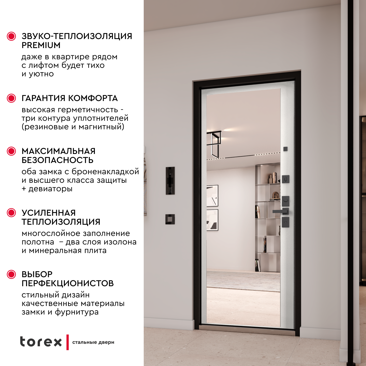 Отзывы на Дверь входная металлическая в квартиру Torex Defender X 880х2070 правая, усиленная шумоизоляция и герметичность, антикоррозия, замки 4ый класс защиты