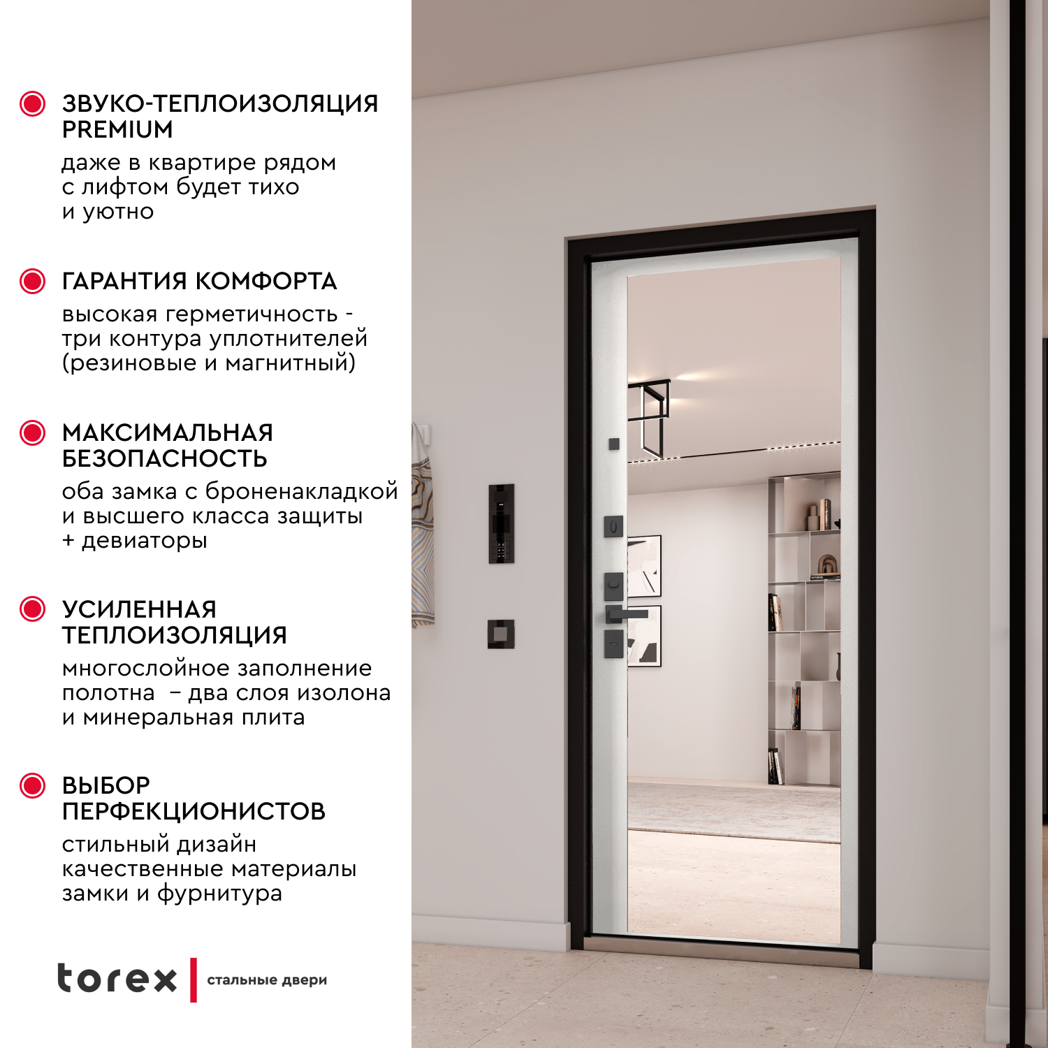Дверь входная металлическая Torex для квартиры Defender X 950х2100 левая усиленная шумоизоляция и герметичность, антикоррозия, зеркало 78 000 ₽