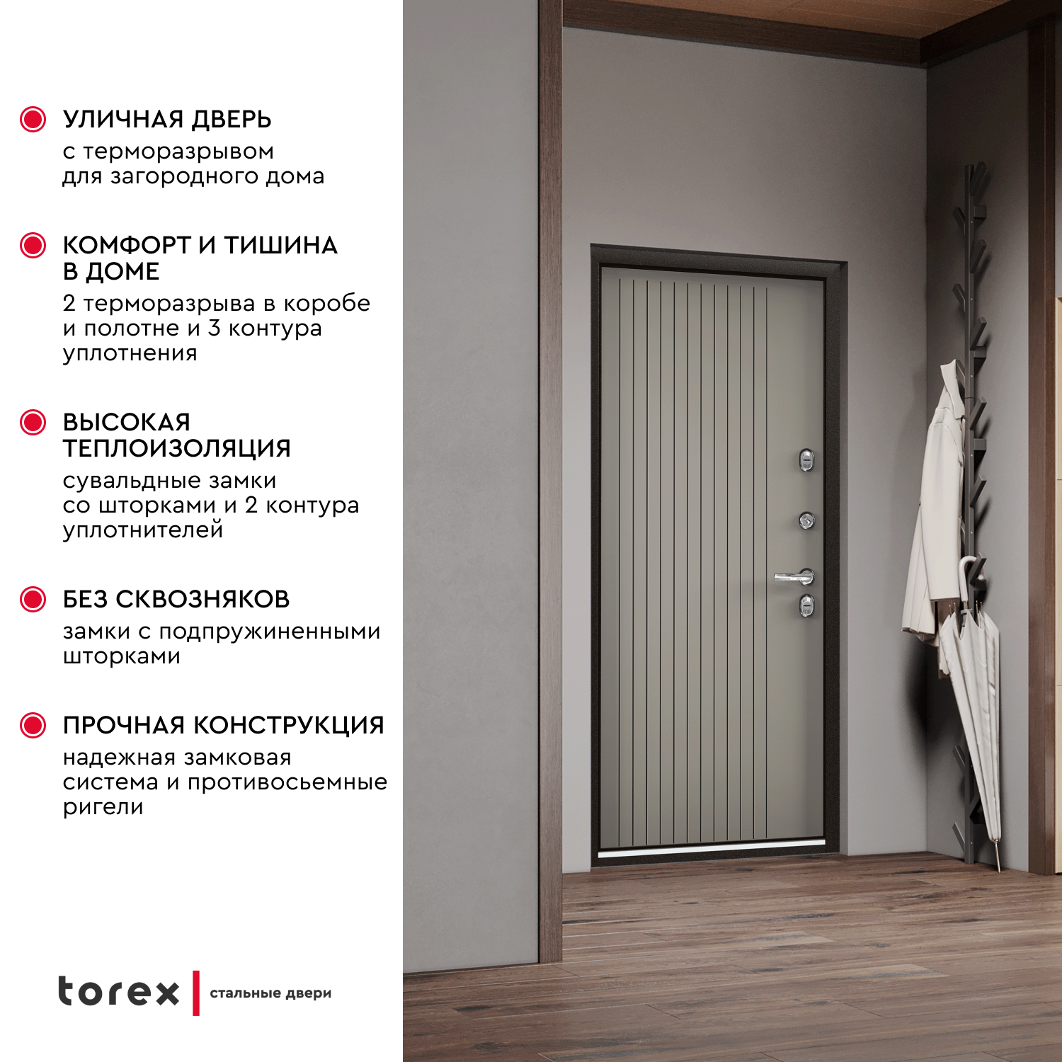 Дверь входная металлическая с терморарывом в дом Torex Village advanced 950х2050 правая, тепло-шумоизоляция, атмосферостойкость, два замка информация:
