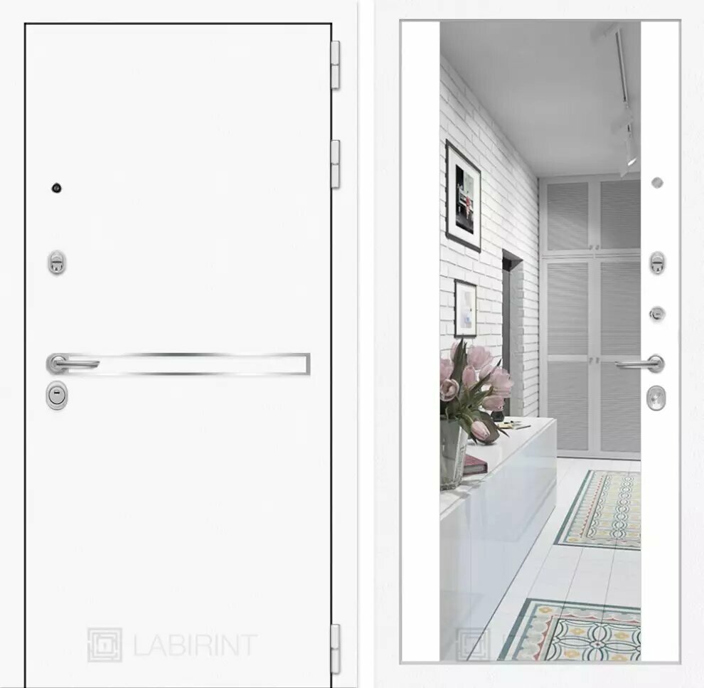 Входная дверь Labirint Лайн WHITE с зеркалом Фацет 960x2050, открывание левое