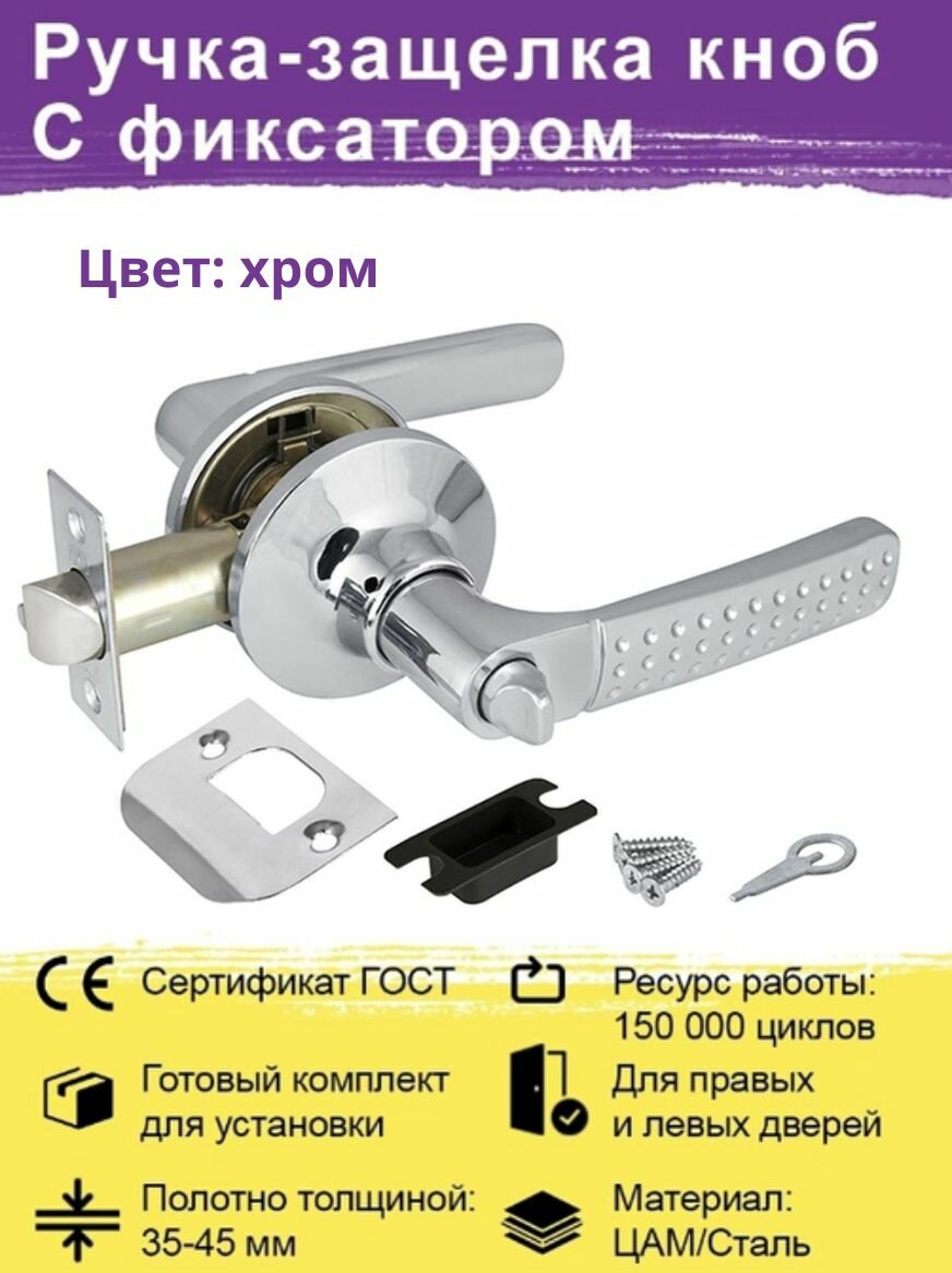 Ручка дверная межкомнатная хром блестящий с защелкой, заверткой и ключами комплект