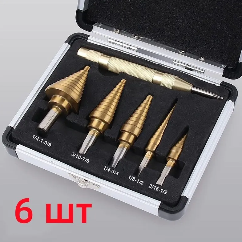 Набор ступенчатых сверл по металлу с титановым покрытием в кейсе 6 шт информация: