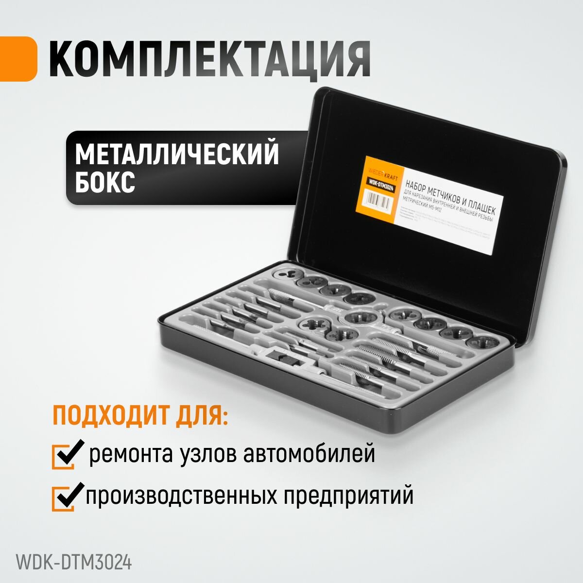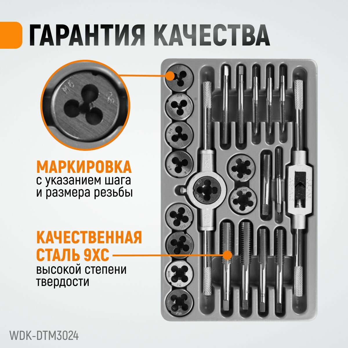 Набор метчиков и плашек М5 - М12, 24 предмета, метрическая резьба WIEDERKRAFT WDK-DTM3024 информация:
