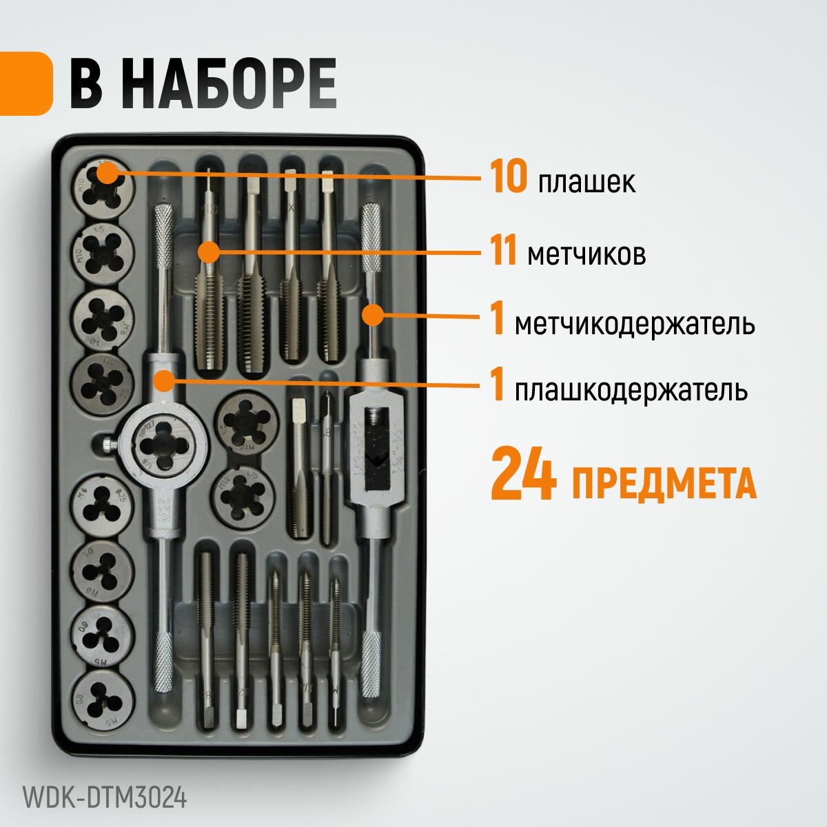 10 цен на Набор метчиков и плашек М5 - М12, 24 предмета, метрическая резьба WIEDERKRAFT WDK-DTM3024