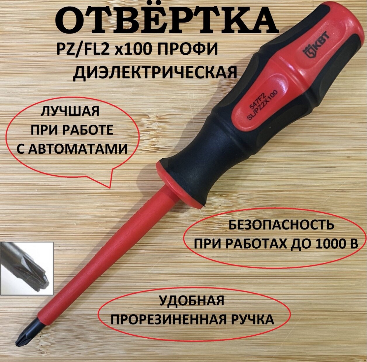 Диэлектрическая отвертка профи PZ/FL 2х100 КВТ {79779} информация: