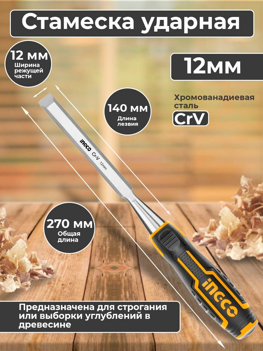 Стамеска по дереву плоская INGCO 12х140 мм информация: