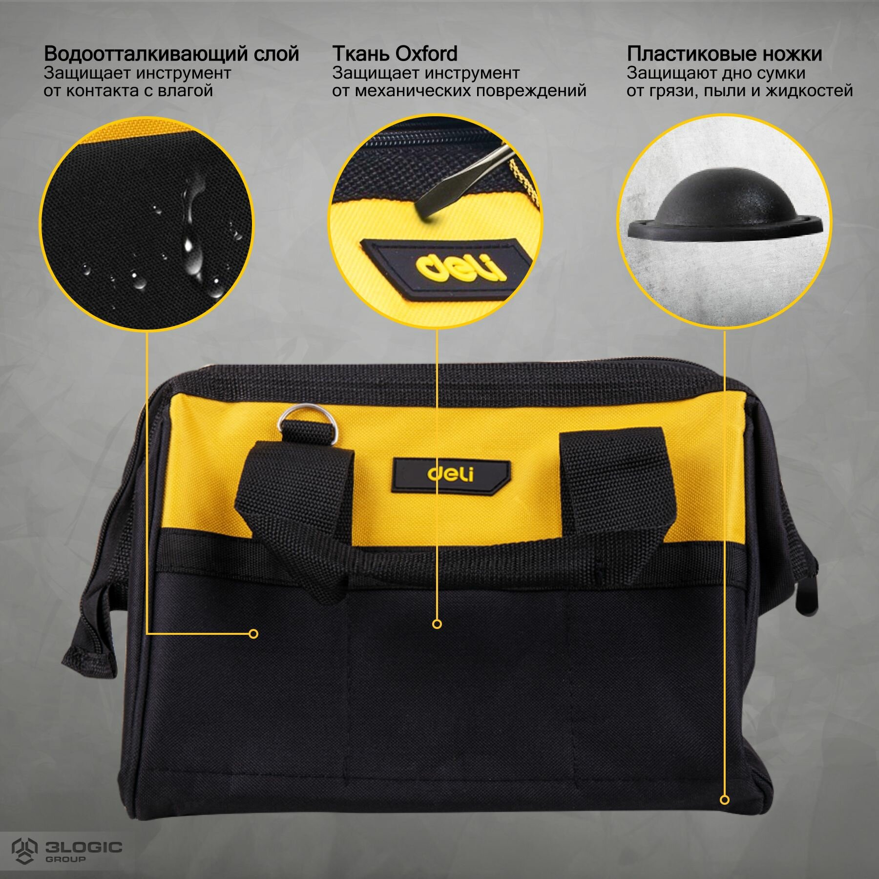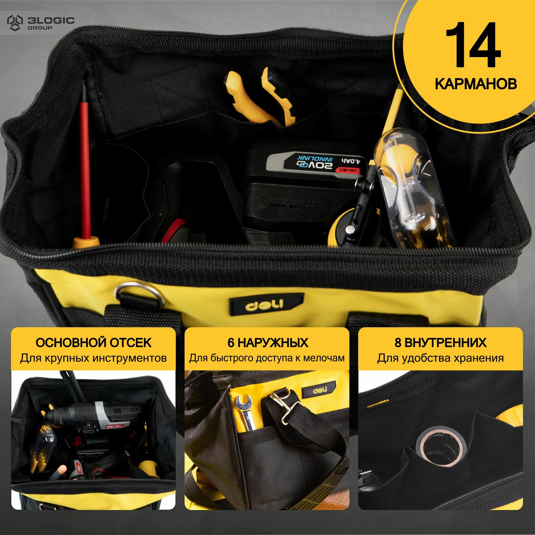 10 цен на Сумка-саквояж для инструментов Deli DL-P2 340x260x300мм, 14 карманов, плечевой ремень, ткань Оксфорд 600D