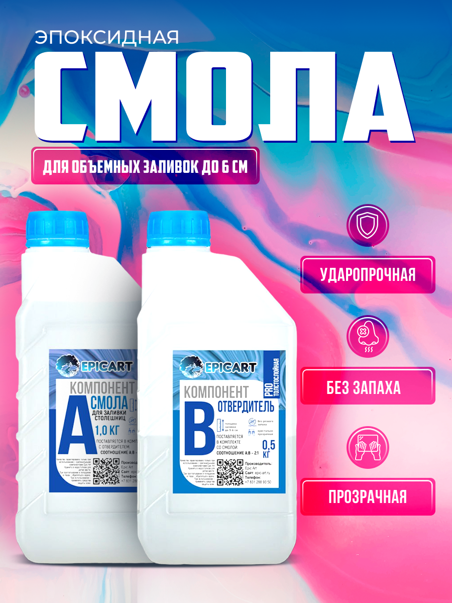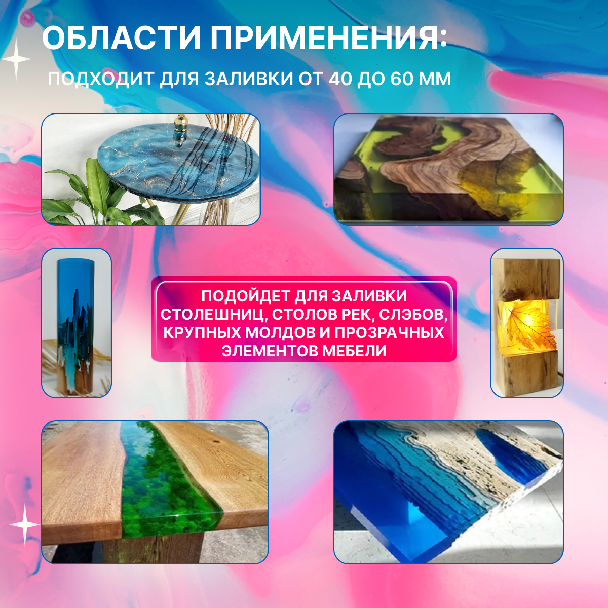 | Дополнительная информация | эпоксидная смола для столешниц, столов, слэбов и других объемных объектов |