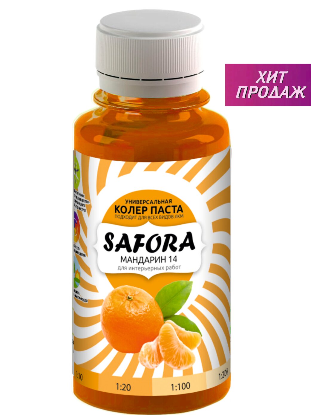 Колеровочная паста 14 мандарин, колер оранжевый SAFORA 100мл, колер для краски, штукатурки и других материалов, колер паста информация: