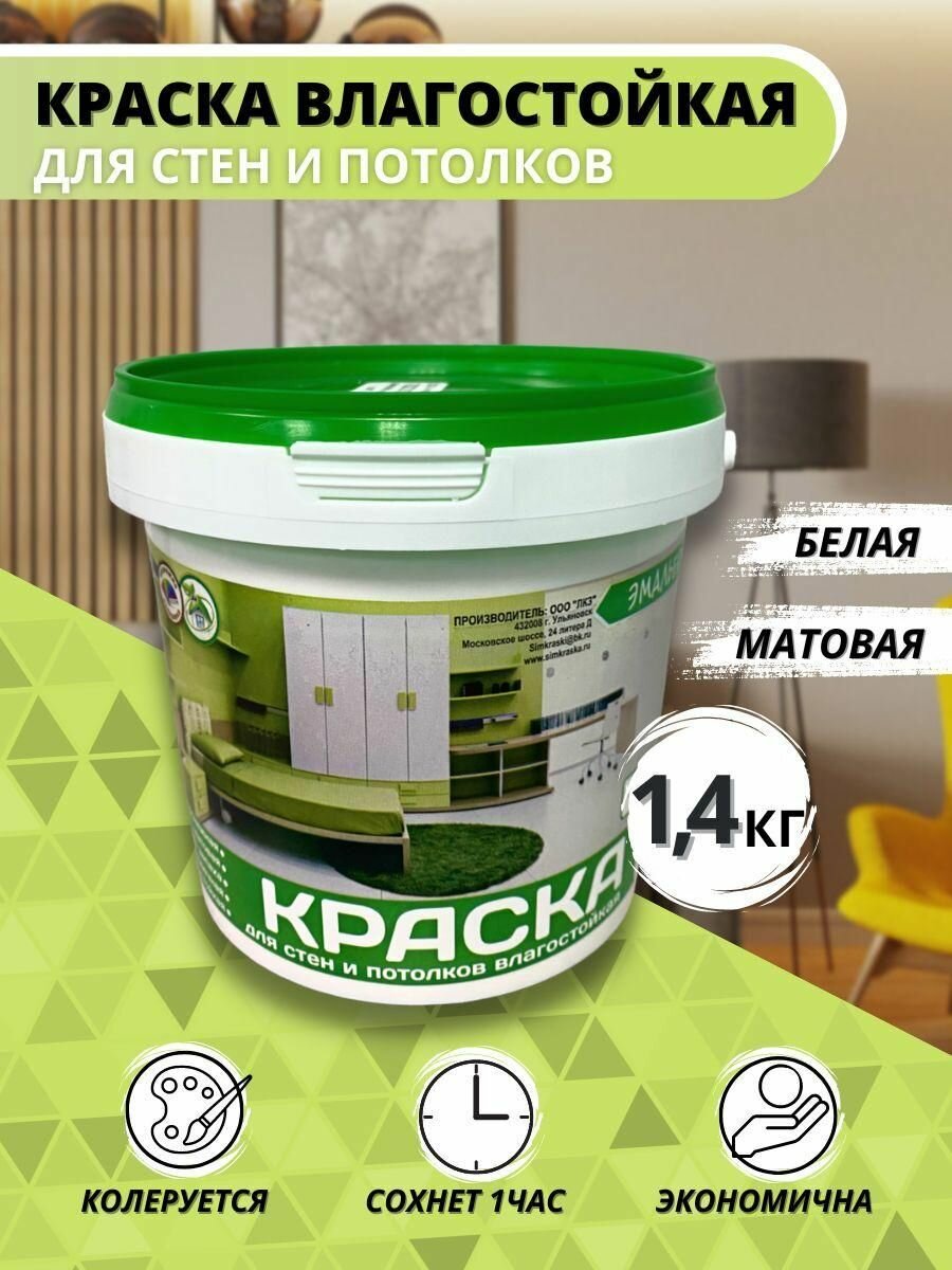 Краска ВД Эмальер Для Стен и Потолков влагостойкая белоснежная 1,4 кг информация: