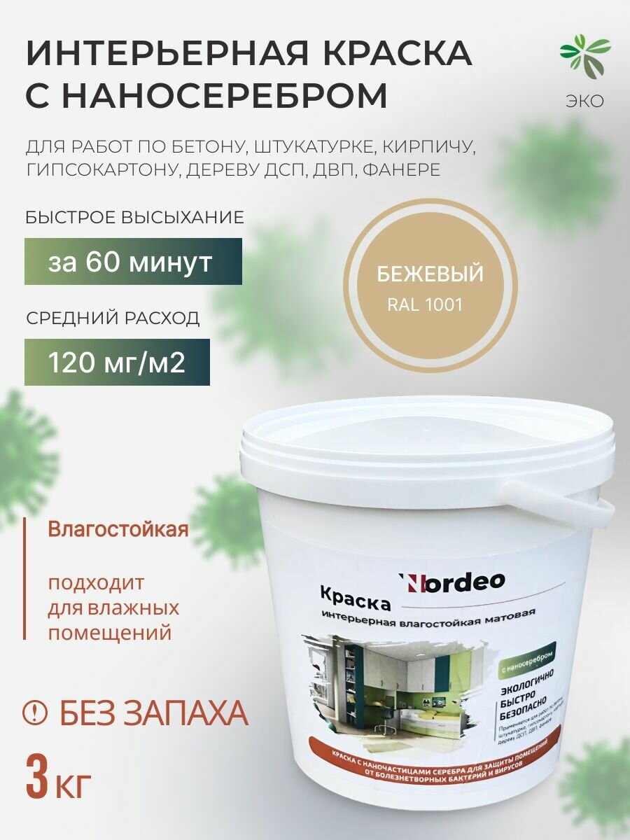 Интерьерная краска для покраски стен в спальне RAL1001 3 кг, матовая, интерьерная информация:
