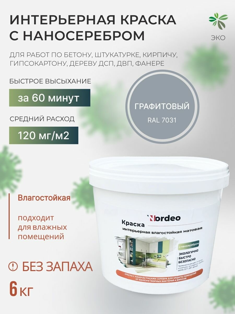 Краска интерьерная, матовая, без запаха, RAL7031 6 кг, матовая, интерьерная информация: