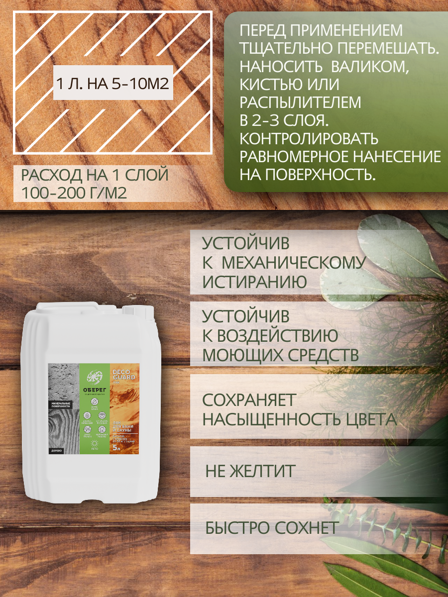 Лак для бани и сауны с воском термостойкий DecoGuard (ВД-АК-02-03) - 5л информация: