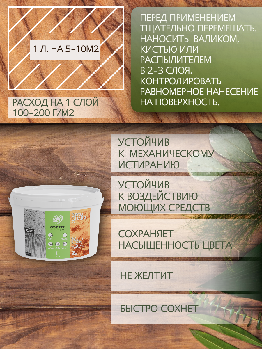 Лак для бани и сауны с воском, термостойкий DecoGuard (ВД-АК-02-03) - 2л информация: