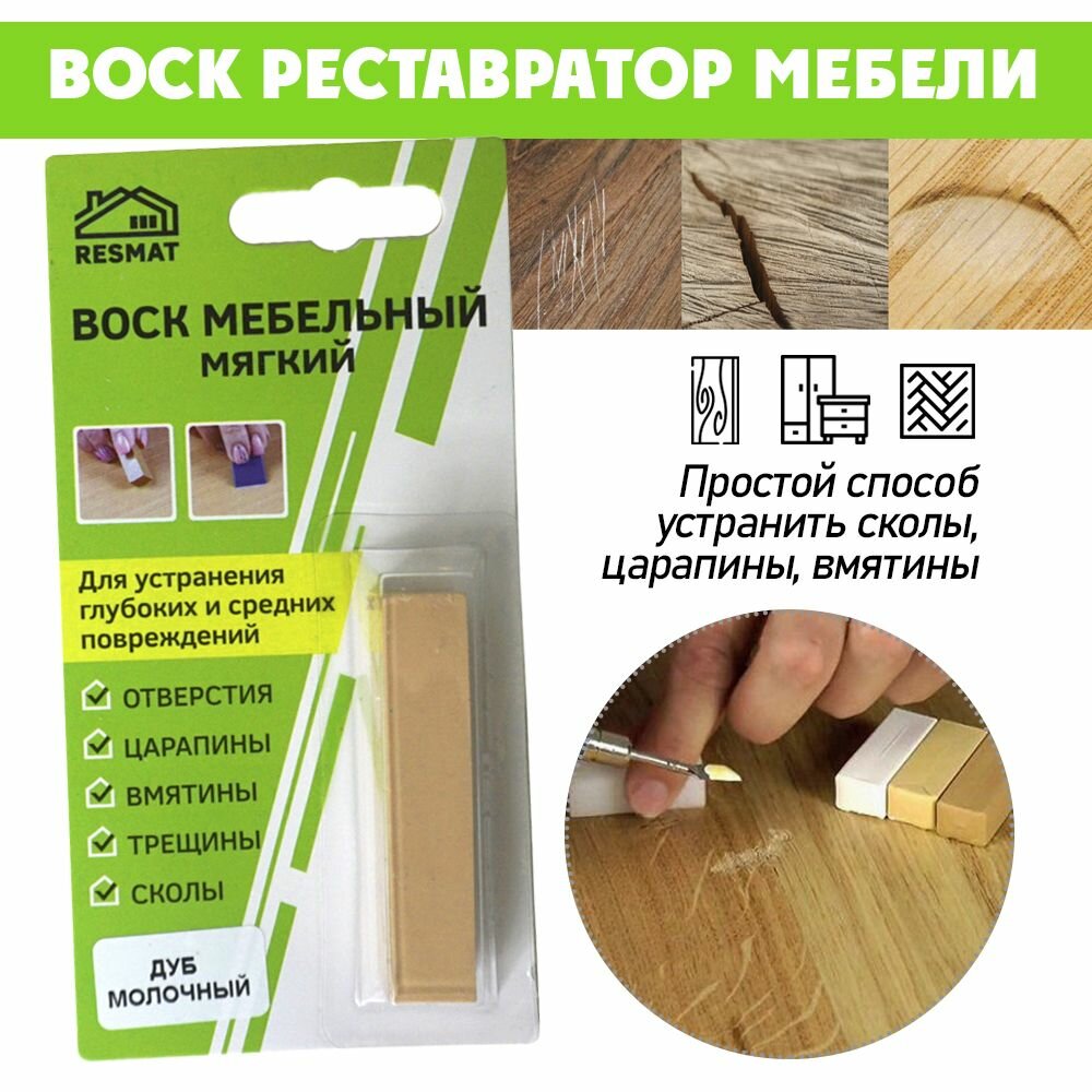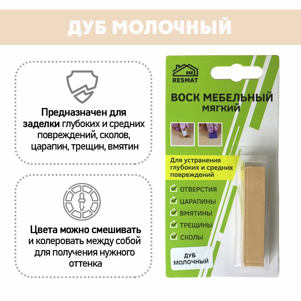 Воск мягкий для реставрации мебели и напольного покрытия/ 1 шт/ цвет - Дуб молочный информация: