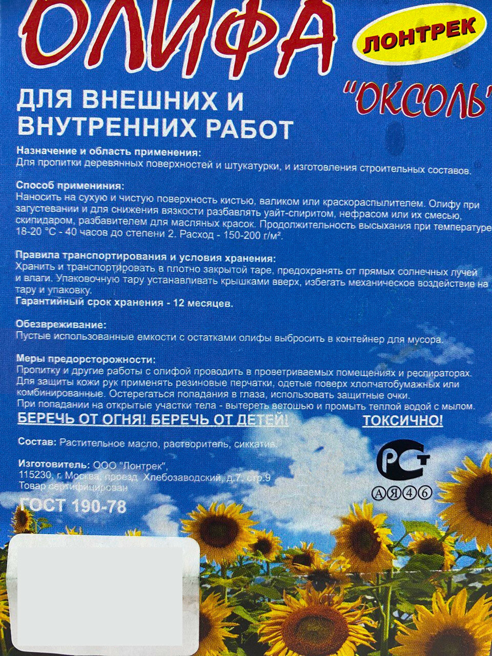 10 цен на Олифа Оксоль 3 л.