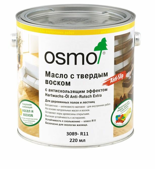 Масло с твердым воском с антискользящим эффектом R-11 OSMO 3089,бесцветное, полуматовое, 0,220мл информация: