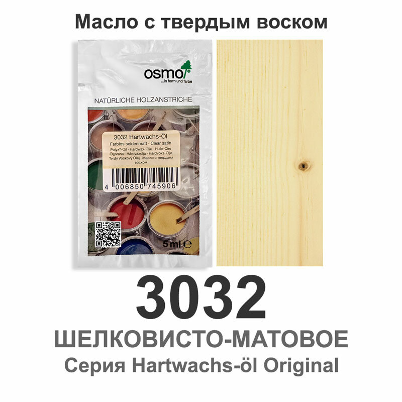 Масло с твердым воском Osmo 3032 Hartwachs-Ol, 5 мл. (Шелковисто-матовое, бесцветное) информация: