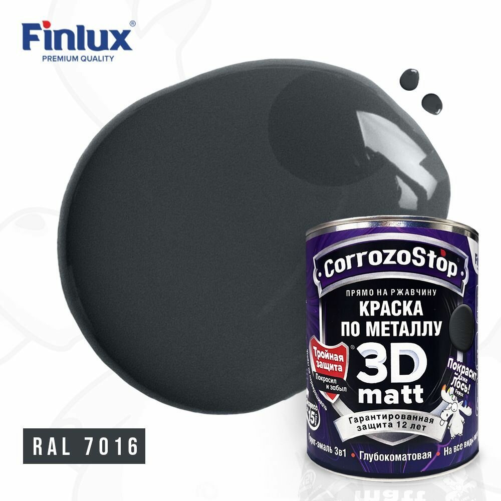 Грунт-эмаль Finlux F-115 Gold, краска от ржавчины по металлу, антикоррозионная термостойкая, силиконакриловая, матовая, 0.75 л, цвет темно-серый информация: