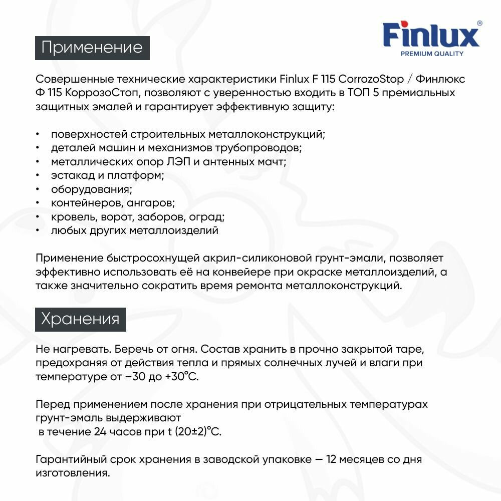 10 цен на Грунт-эмаль Finlux F-115 Gold, краска от ржавчины по металлу, антикоррозионная термостойкая, силиконакриловая, матовая, 0.75 л, цвет темно-серый