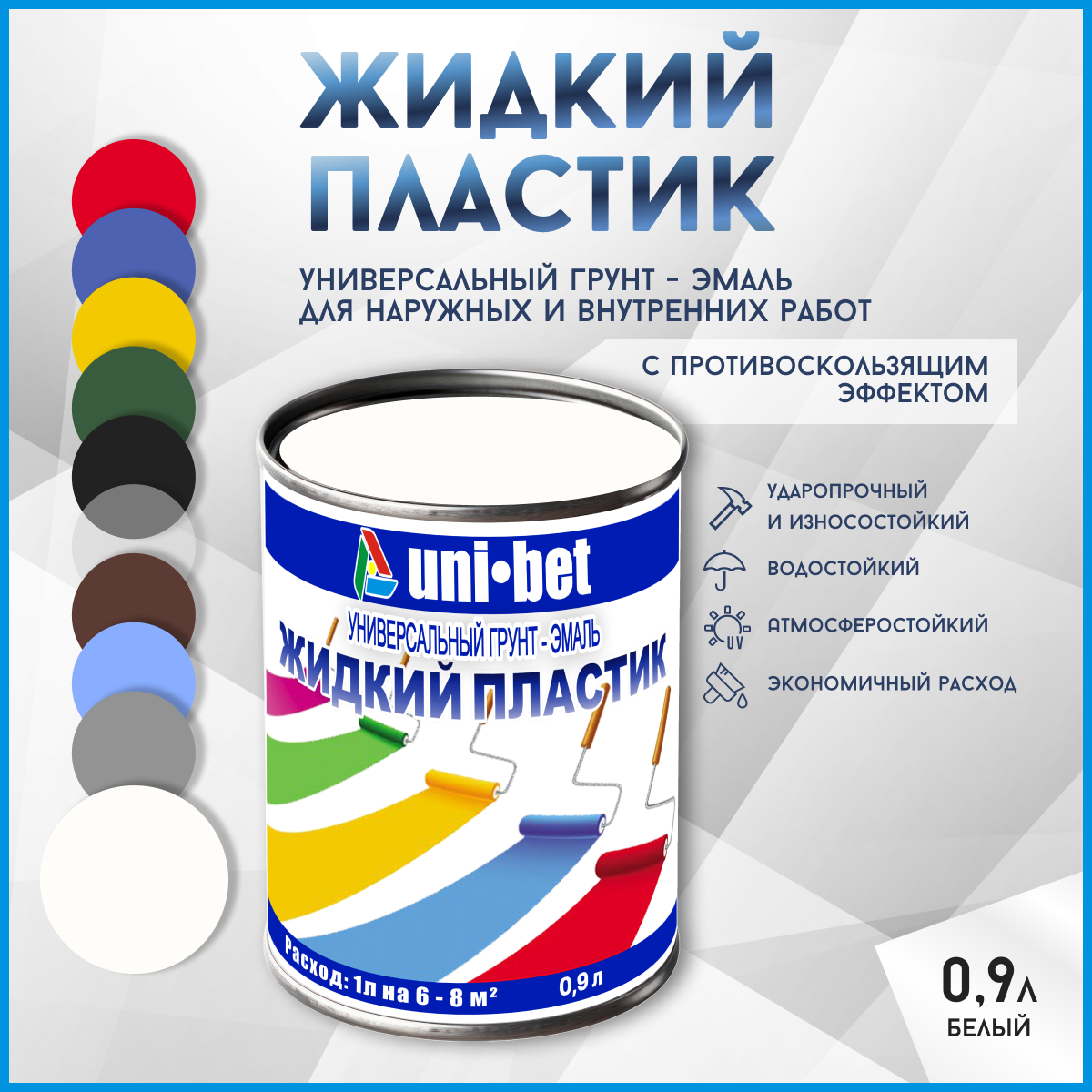 10 цен на Жидкий пластик краска для бетона металла дерева асфальта UNI-BET 0,9л белый для наружных и внутренних работ/ Грунт эмаль UNI-BET
