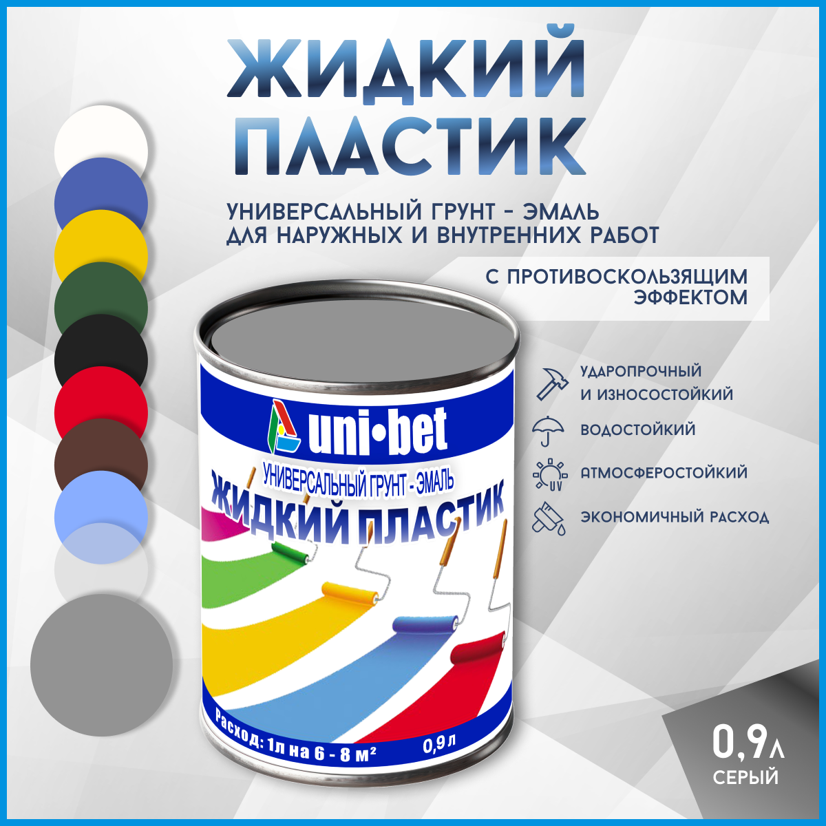 10 цен на Жидкий пластик краска для бетона металла дерева асфальта UNI-BET 0,9л серый для наружных и внутренних работ/ Грунт эмаль UNI-BET