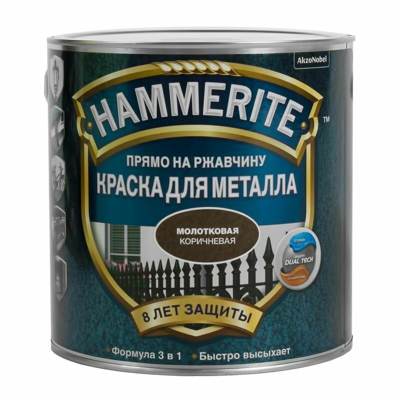 Hammerite | Хаммерайт молотковая эмаль по ржавчине коричневый 2.5 л