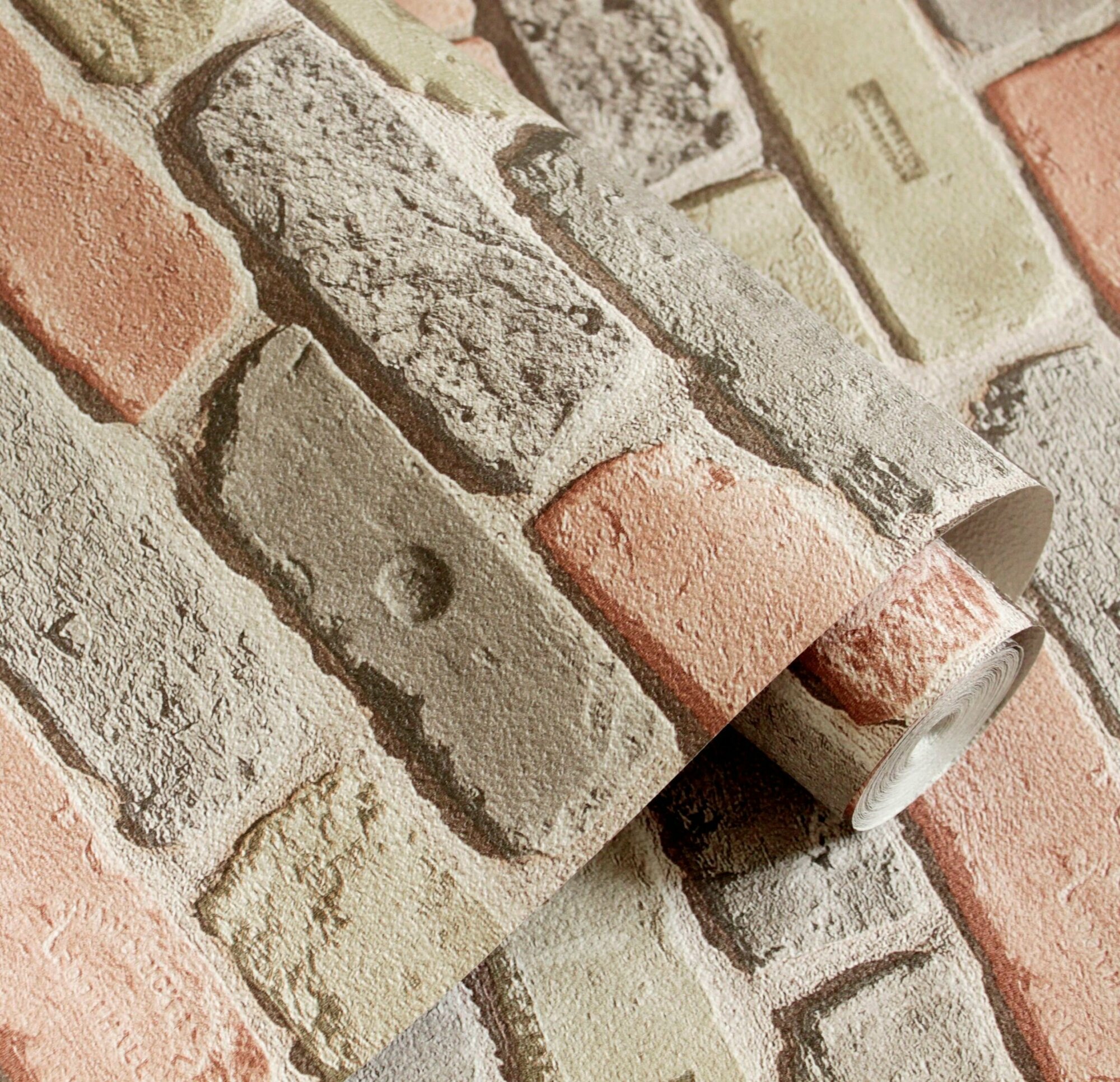 Бумажные обои Кирпичи 301-012, 0,53х10,05м, розовый/алый/серый Пермские обои 7519475 .