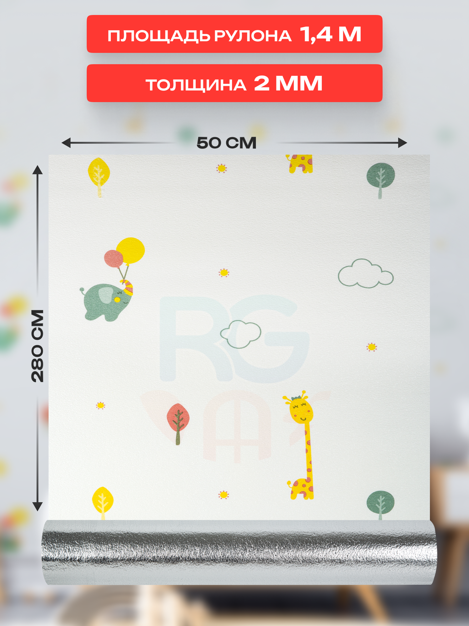 Детские обои самоклеющие рулон 50х280 см 2 шт цвет: жирафы и слоники 1 199 ₽
