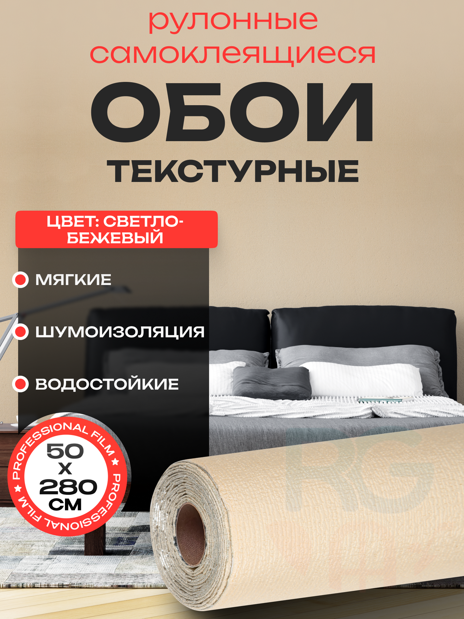 Обои для спальни. Обои самоклеющиеся для кухни 50х280 см цвет: песочный 649 ₽