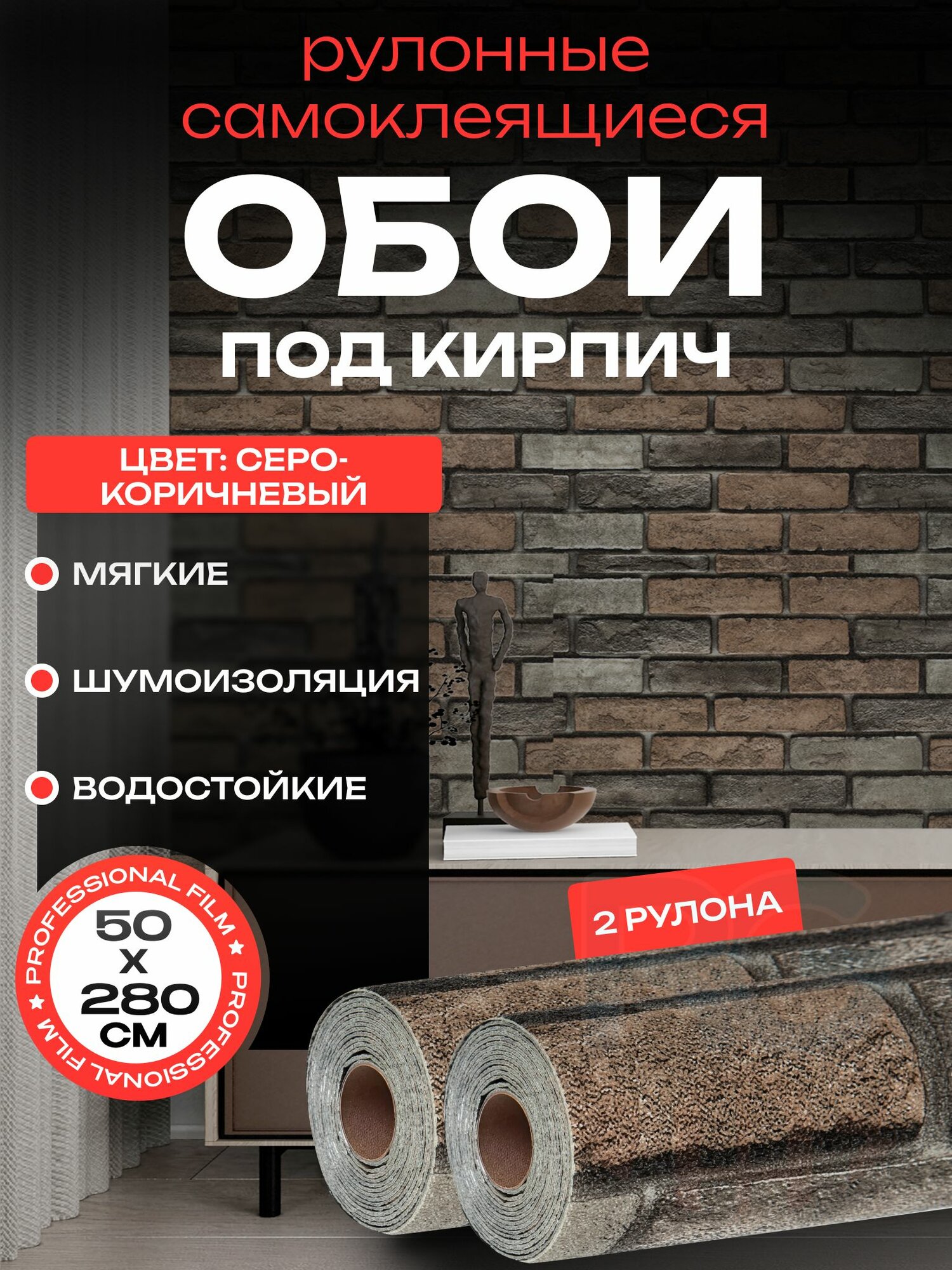 Самоклеющиеся обои для стен в спальню 50х280 см 2 шт цвет: серый кирпич информация: