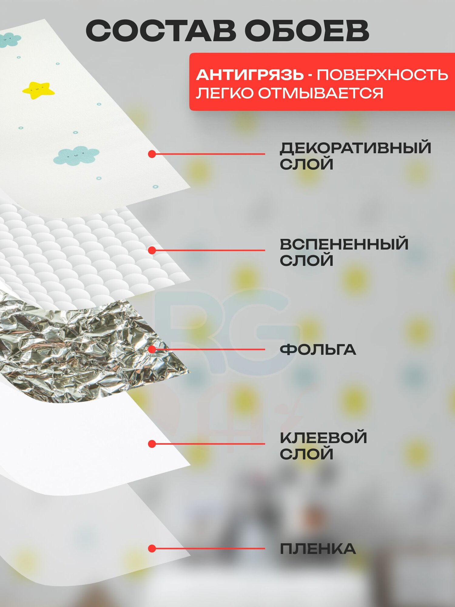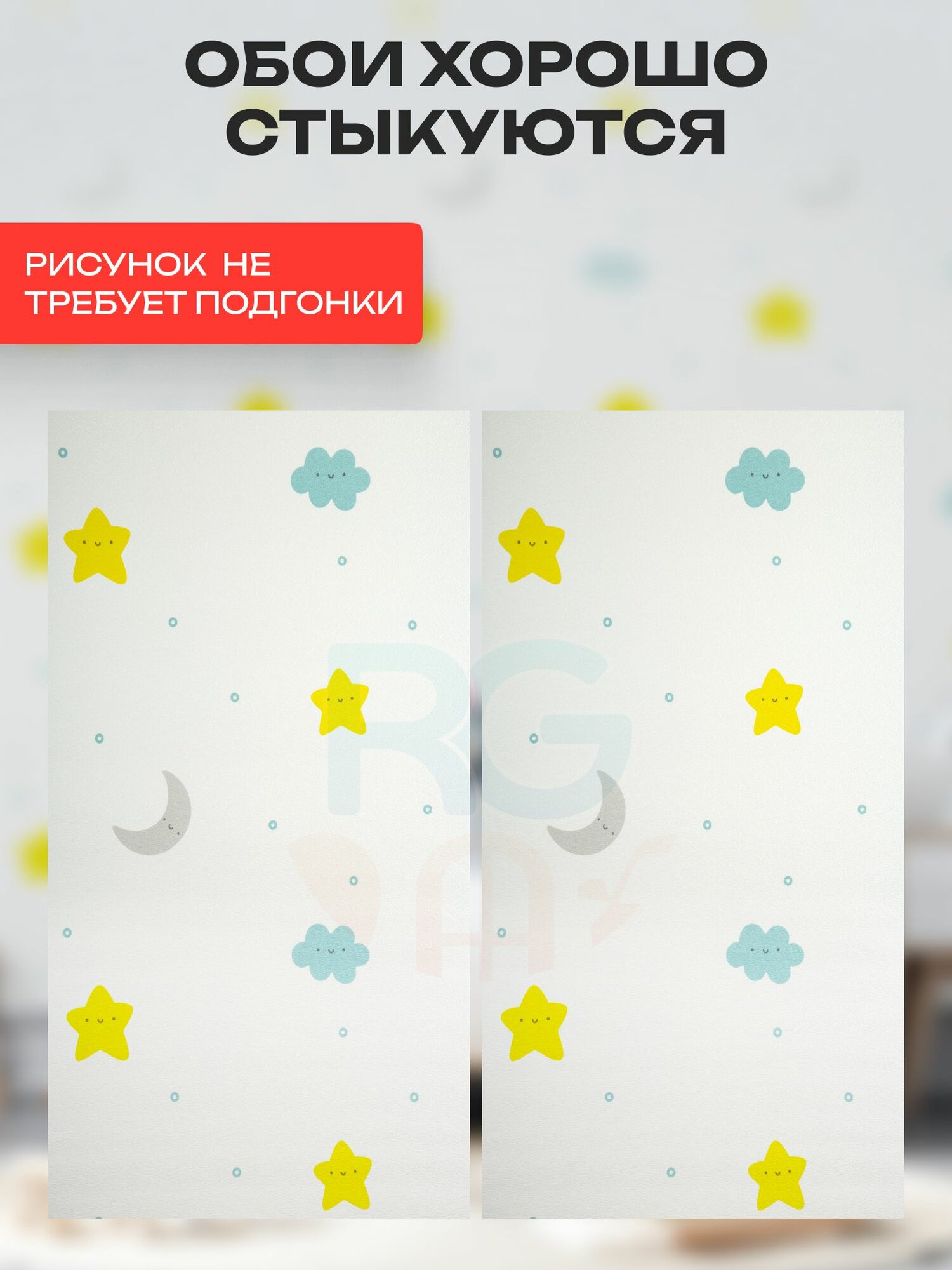 Отзывы на Обои в детскую комнату, самоклеящиеся обои для детей , размер 50х280 см 2 шт звезды и облака