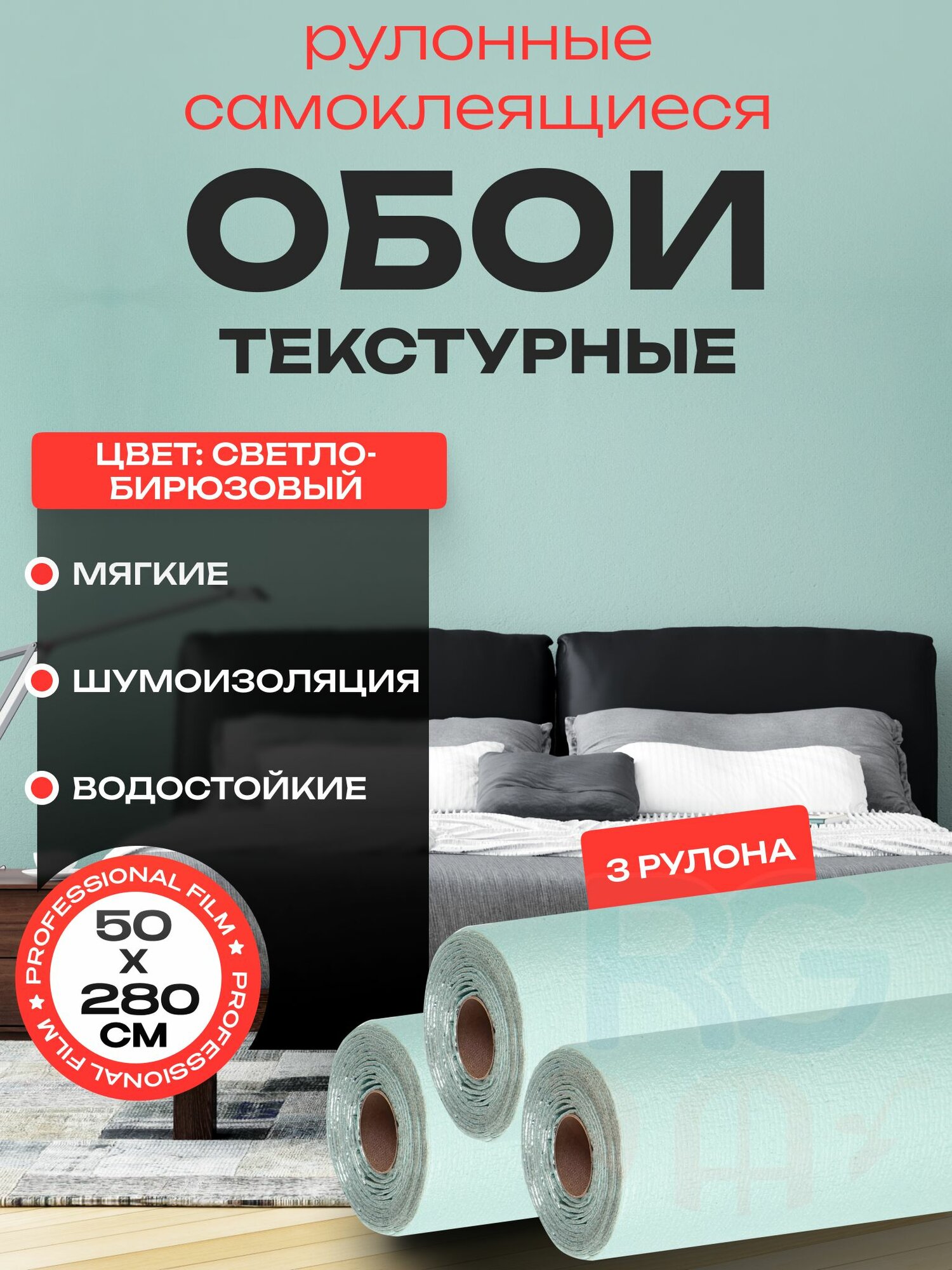 10 цен на Обои самоклеящиеся для стен рулоны 50х280 см - 3 шт. Обои без подгона цвет: светлая мята однотонные