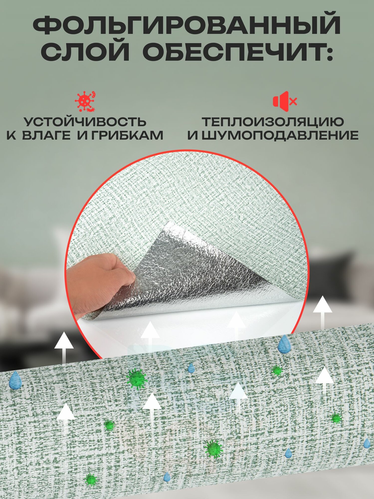 10 цен на Обои самоклеящиеся для стен в комнату. Стеновые панели самоклеящиеся 50х280 см - 3 шт цвет: серо-зеленая рогожка