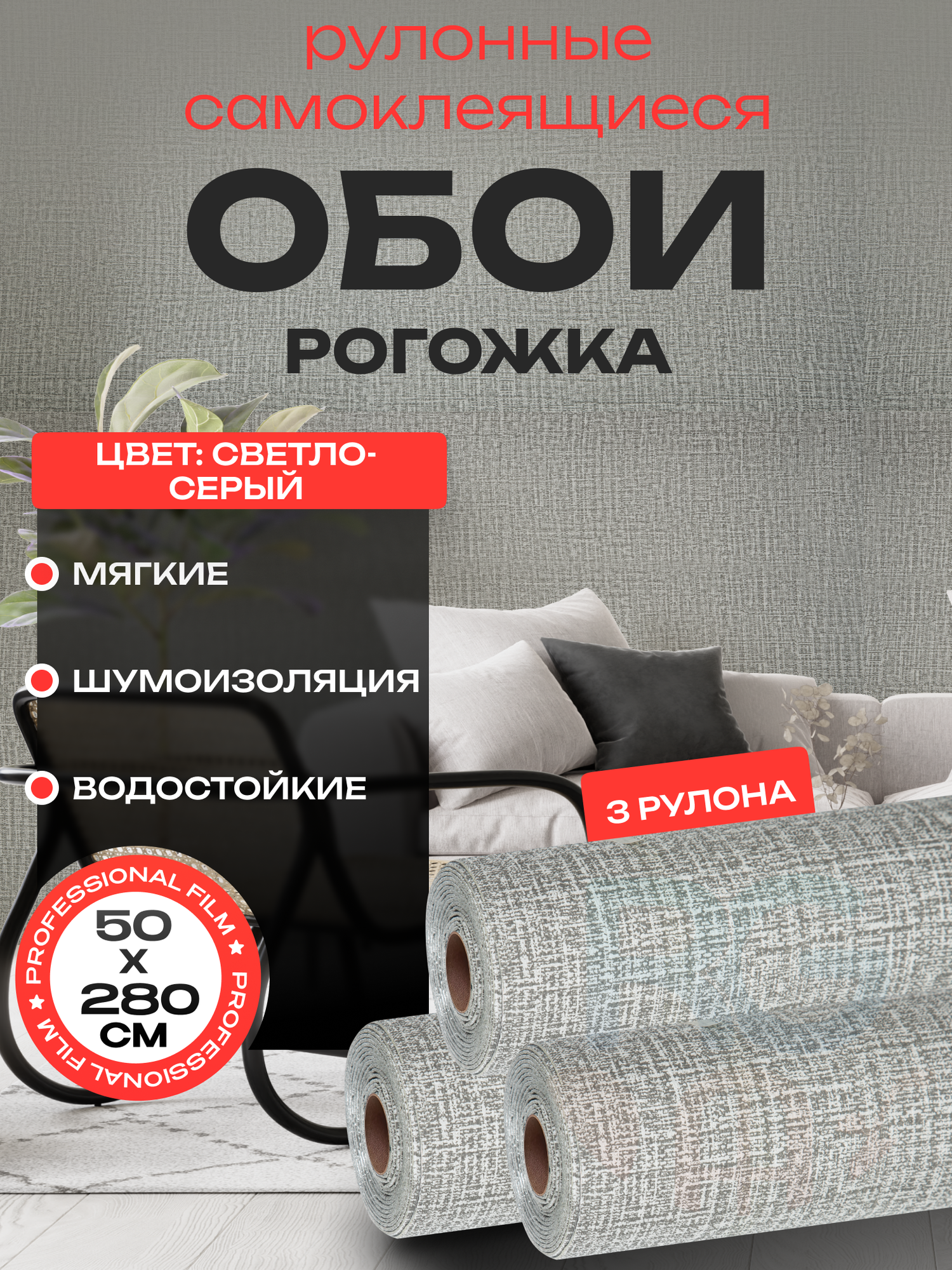Самоклеющиеся обои на стену/ 50х280 см 2 шт цвет: серо-зеленая рогожка 1 224 ₽