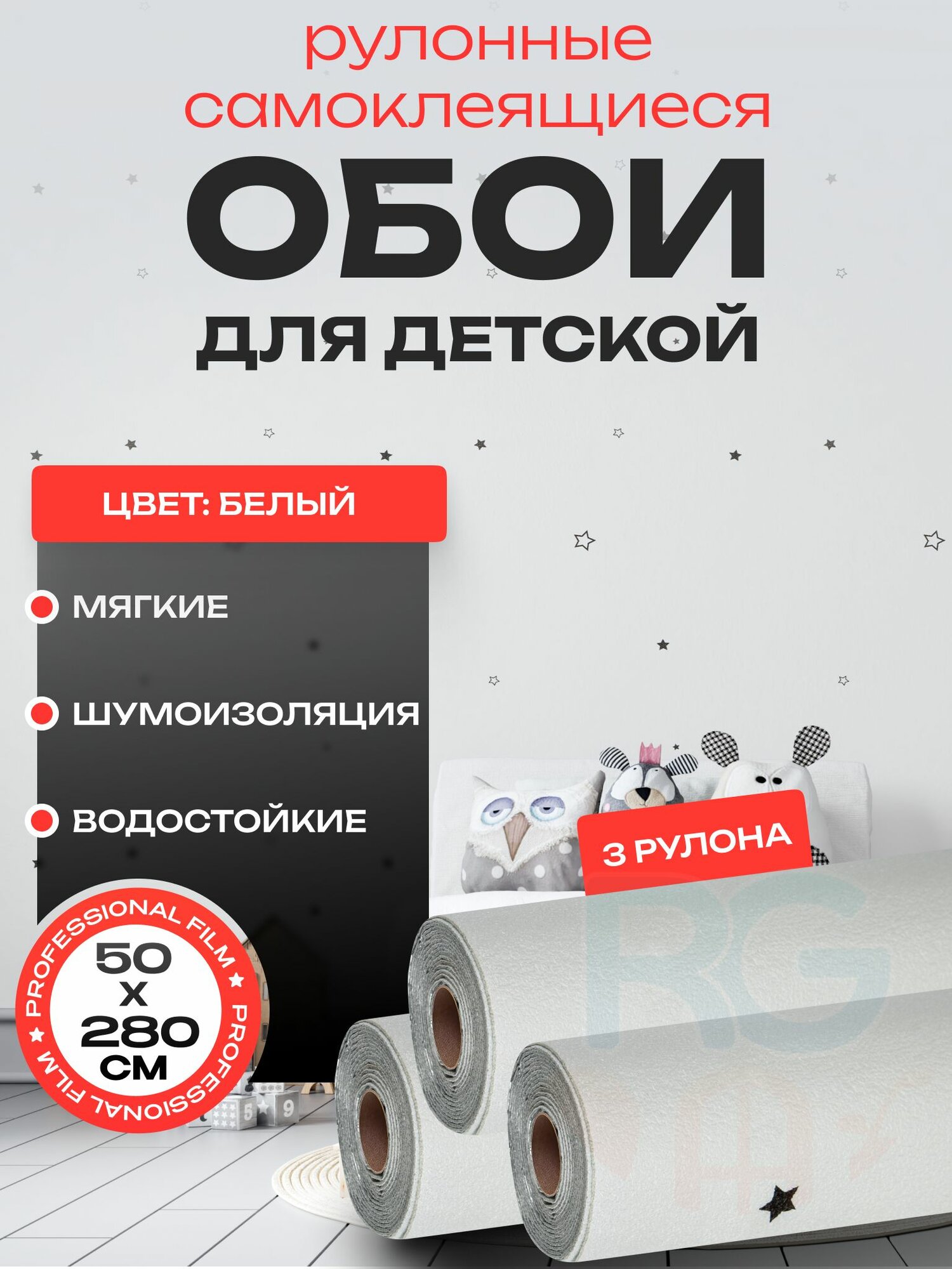 Мягкие обои для стен в детскую комнату. Детские обои для мальчика и девочки 50х280 см - 3 шт цвет: звезды на белом информация: