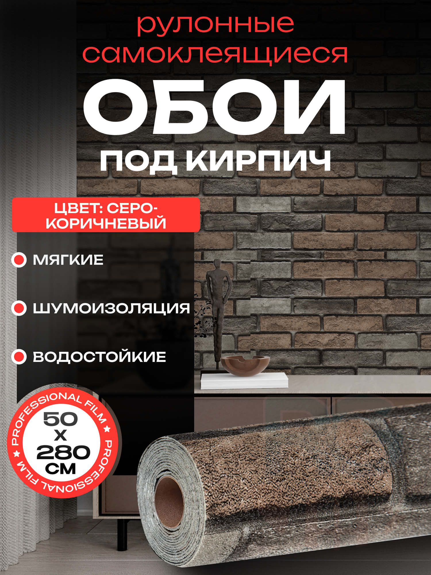Обои кирпич самоклеящиеся. Самоклеящиеся обои для стен на кухню 50х280 см - 3 шт цвет: серый кирпич 1 782 ₽