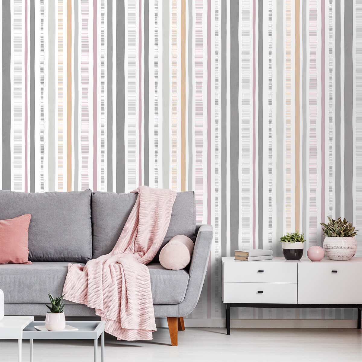 10 цен на Обои винил на флизелине, полоса серо-бежевая, метровые, для детской мальчика, Lines