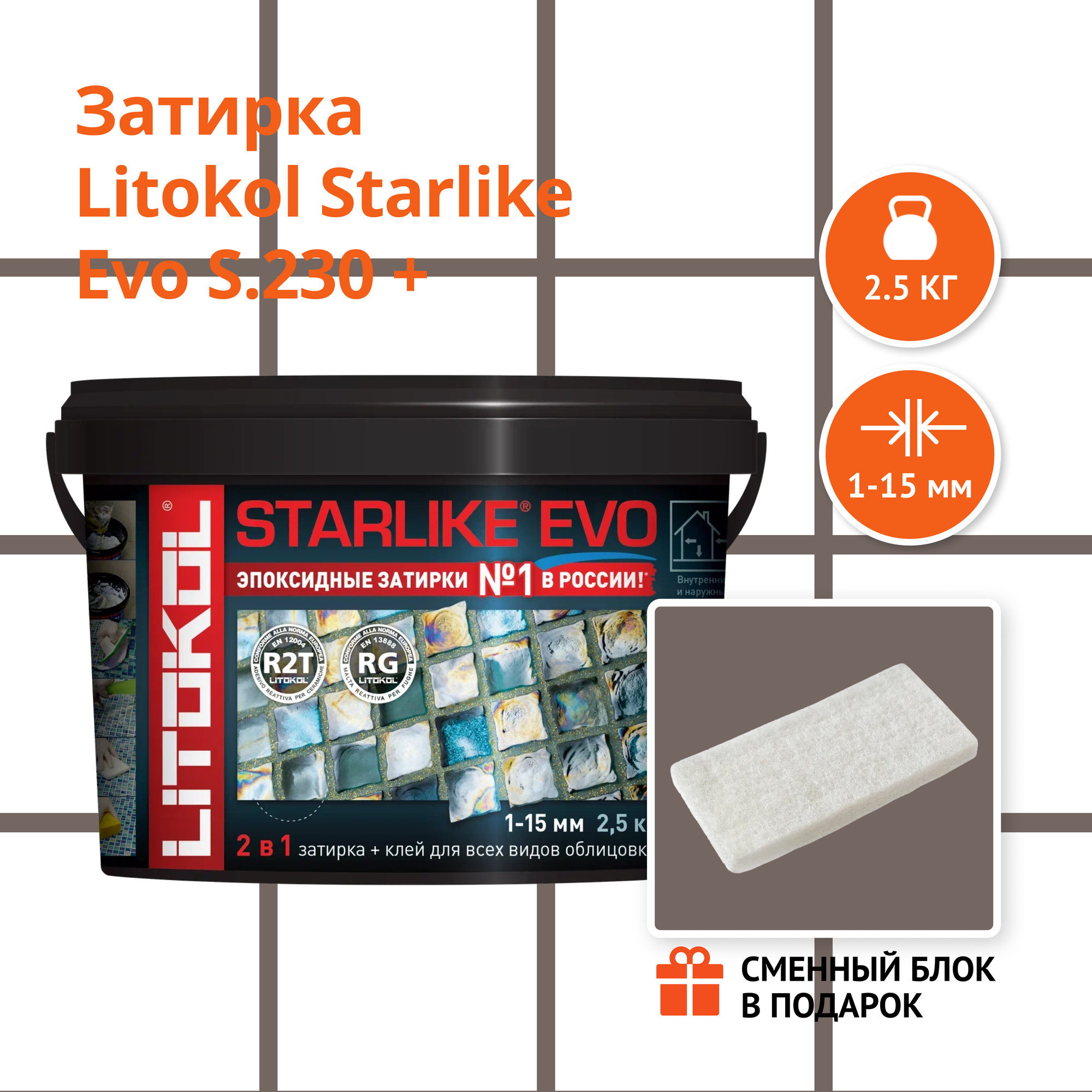 Затирка LITOKOL STARLIKE EVO S.230 CACAO, 2.5 кг + Сменный блок в подарок информация: