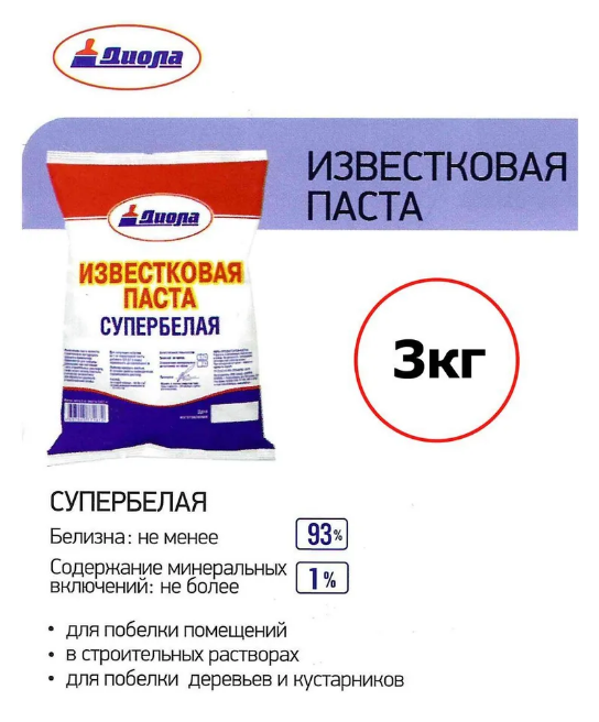 Известковая паста супербелая , 3 кг информация: