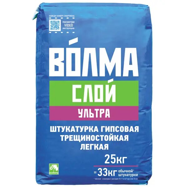 Штукатурка гипсовая Волма Слой ультра 25 кг информация: