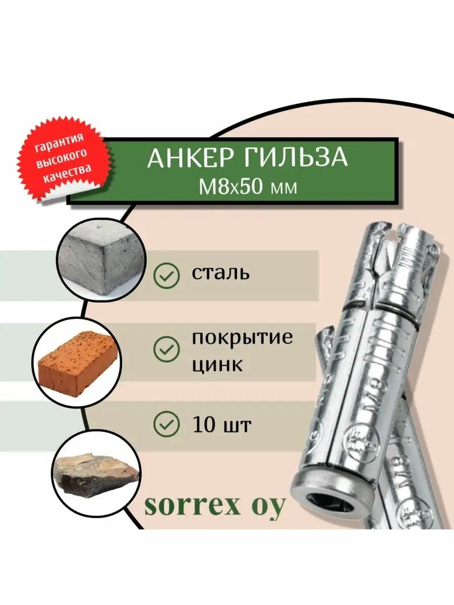 10 цен на Анкер болт оцинкованный гильза PFG М8 универсальный для бетона, кирпича Sorrex OY (10 штук)
